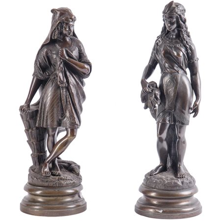 COPPIA SCULTURE in bronzo raffiguranti "Figure femminili"