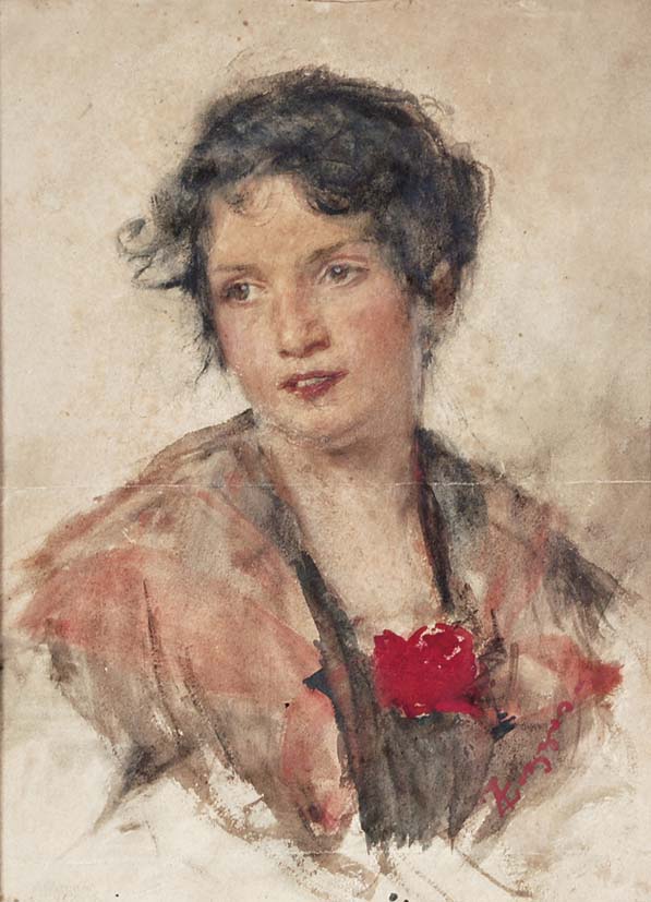 ZEZZOS ALESSANDRO Venezia 1848 - Vittorio Veneto 1914 Ritratto acquerello su carta 32x24 firma in basso a destra La carta presenta una lieve piegatura al centro