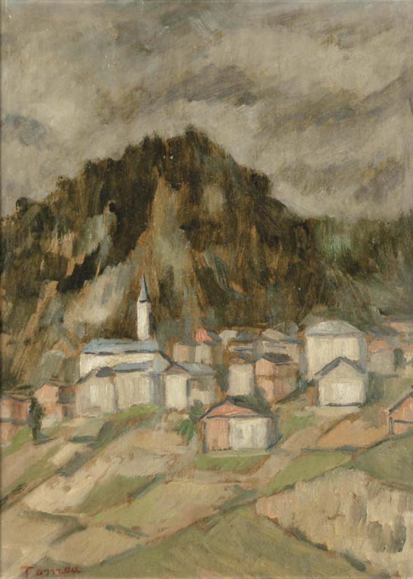 TOMEA FIORENZO Zoppè di Cadore 1910 - Milano 1960 Zoppè 1953 olio su cartone 45x33 firma in basso a sinistra firma data e titolo al retro