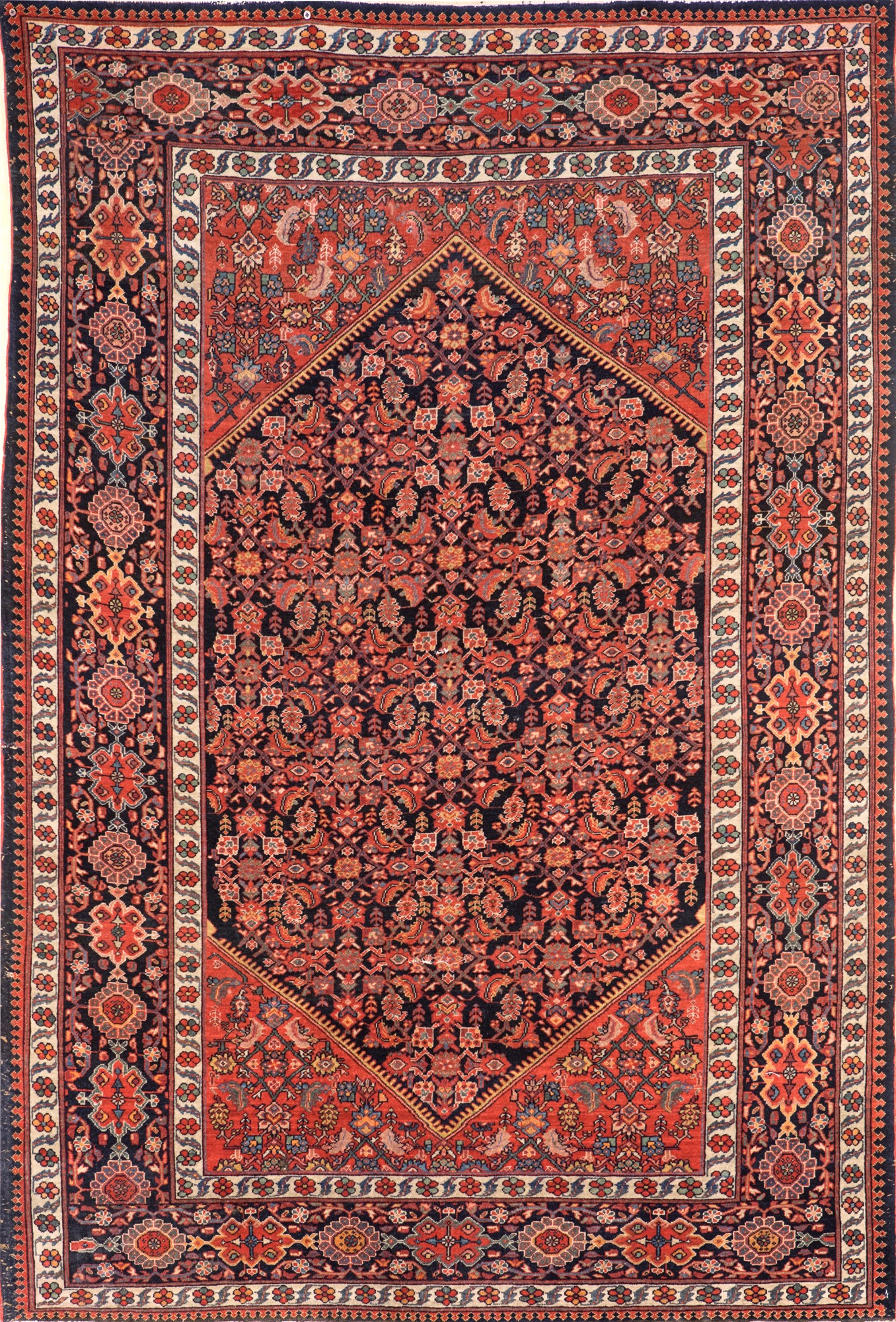 Lotto 335 | Tappeto fondo nero con cantonali rossi