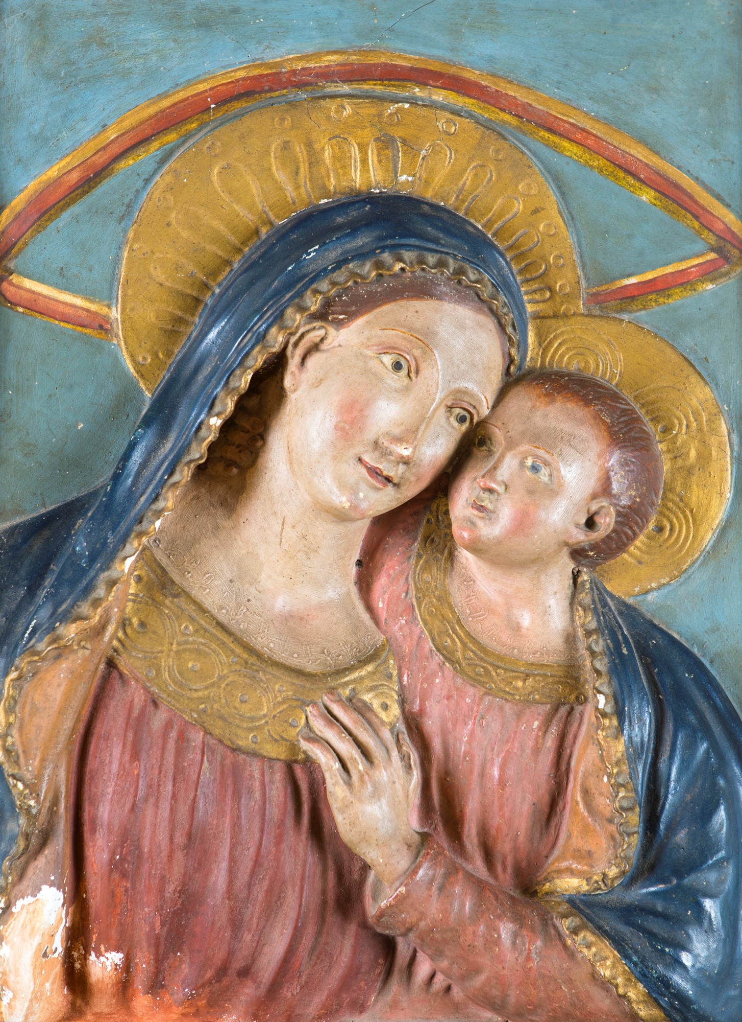 Bassorilievo in gesso policromo raffigurante Madonna col Bambino