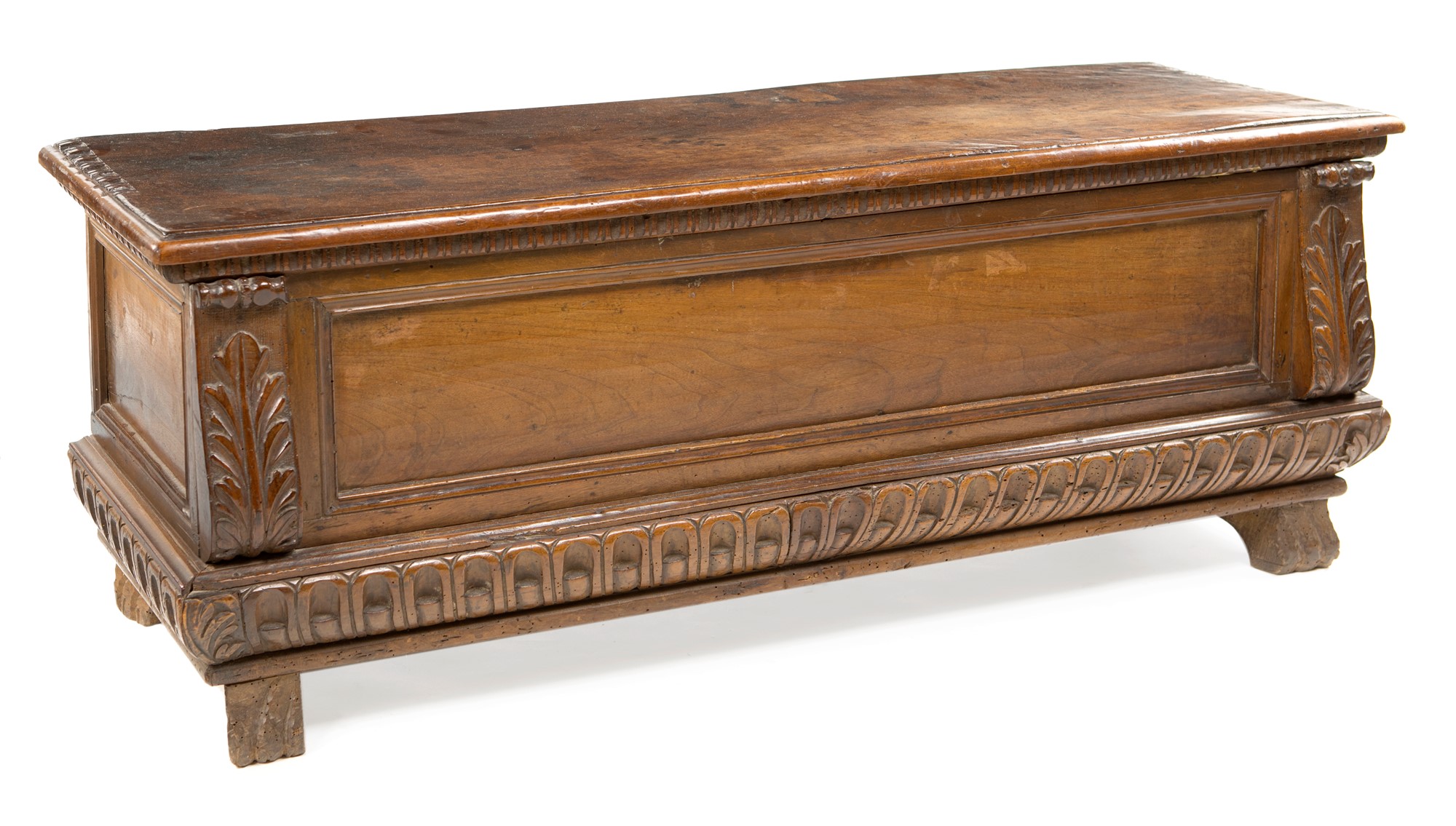 cm 30x134x43 cm 30x134x43 con facciata delimitata da lesene con foglie intagliate; cornice inferiore percorsa da unghiature e baccelli, piedi a mensola
