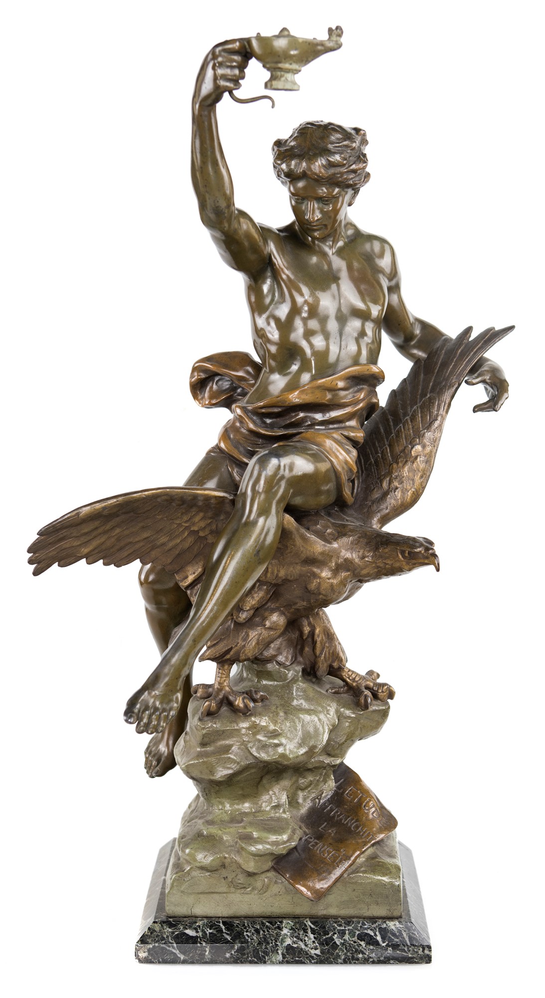 Emile Louis Picault (Parigi, 1833 - ?, 1915) Lo studio libera il pensiero - Grande scultura in lega metallica, inizi del XX secolo