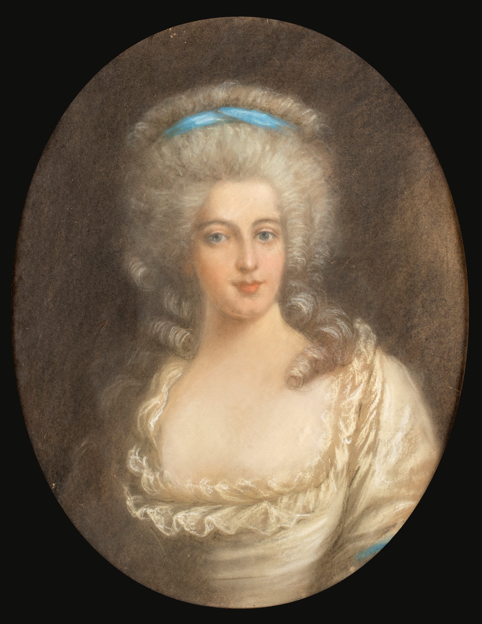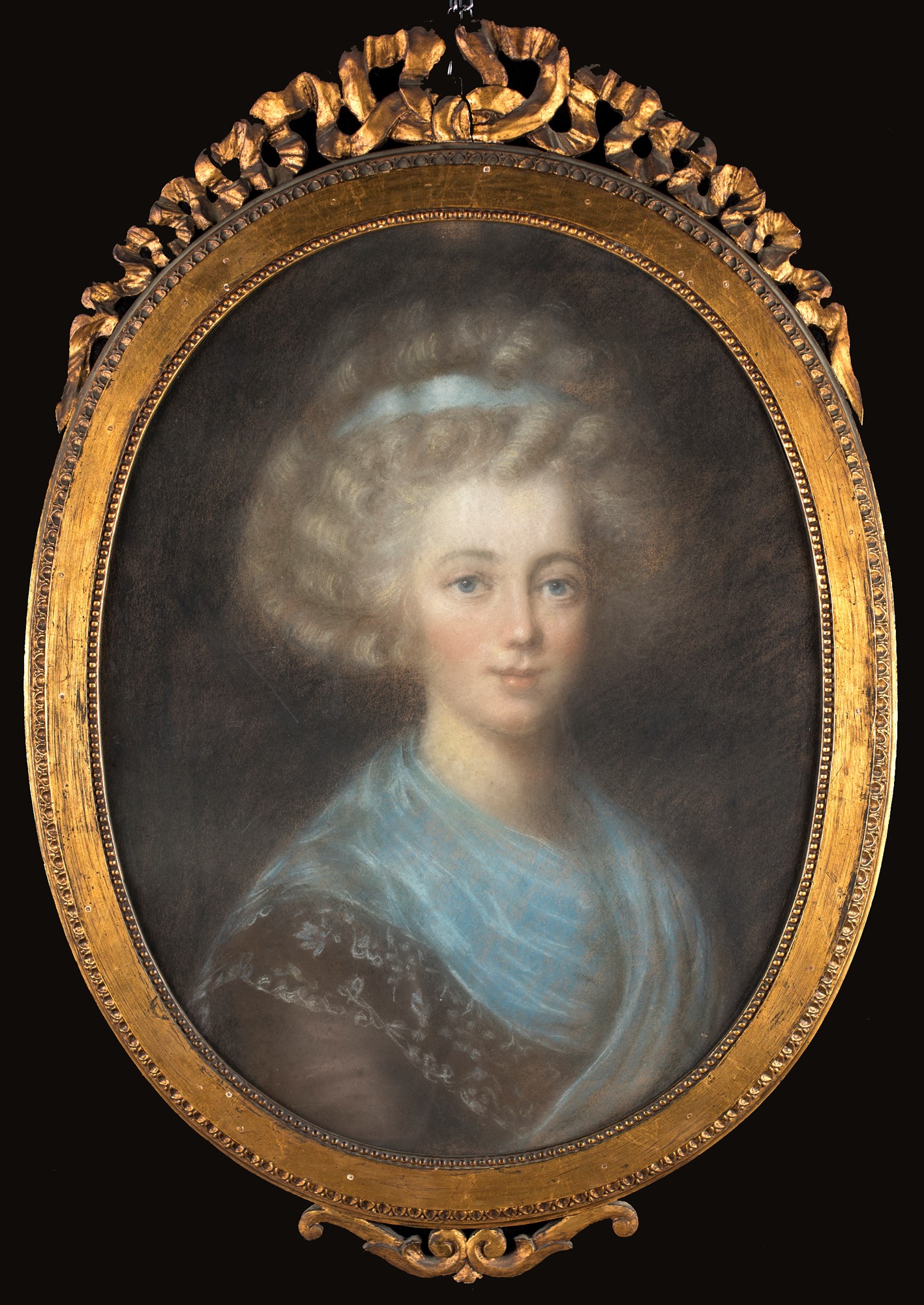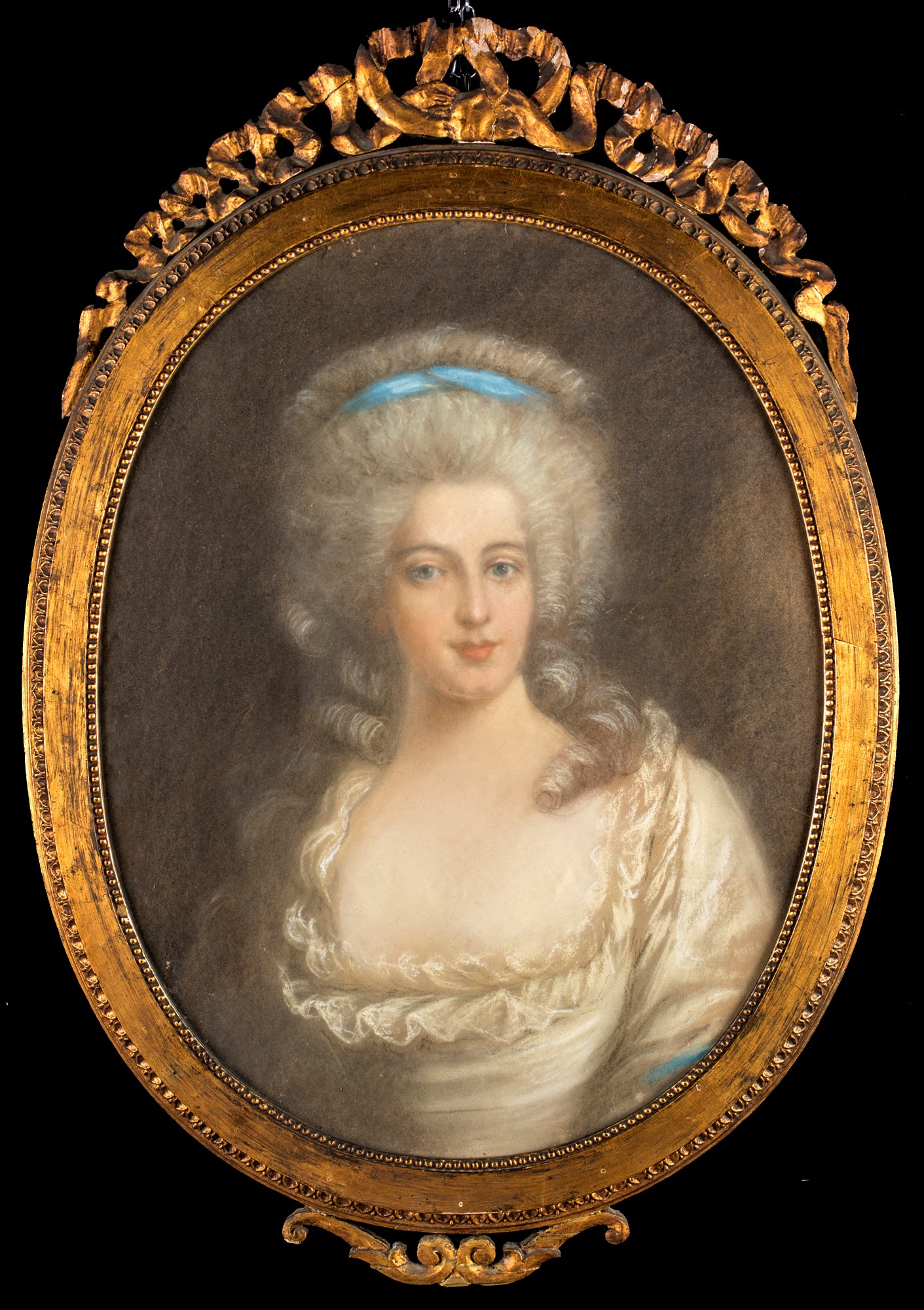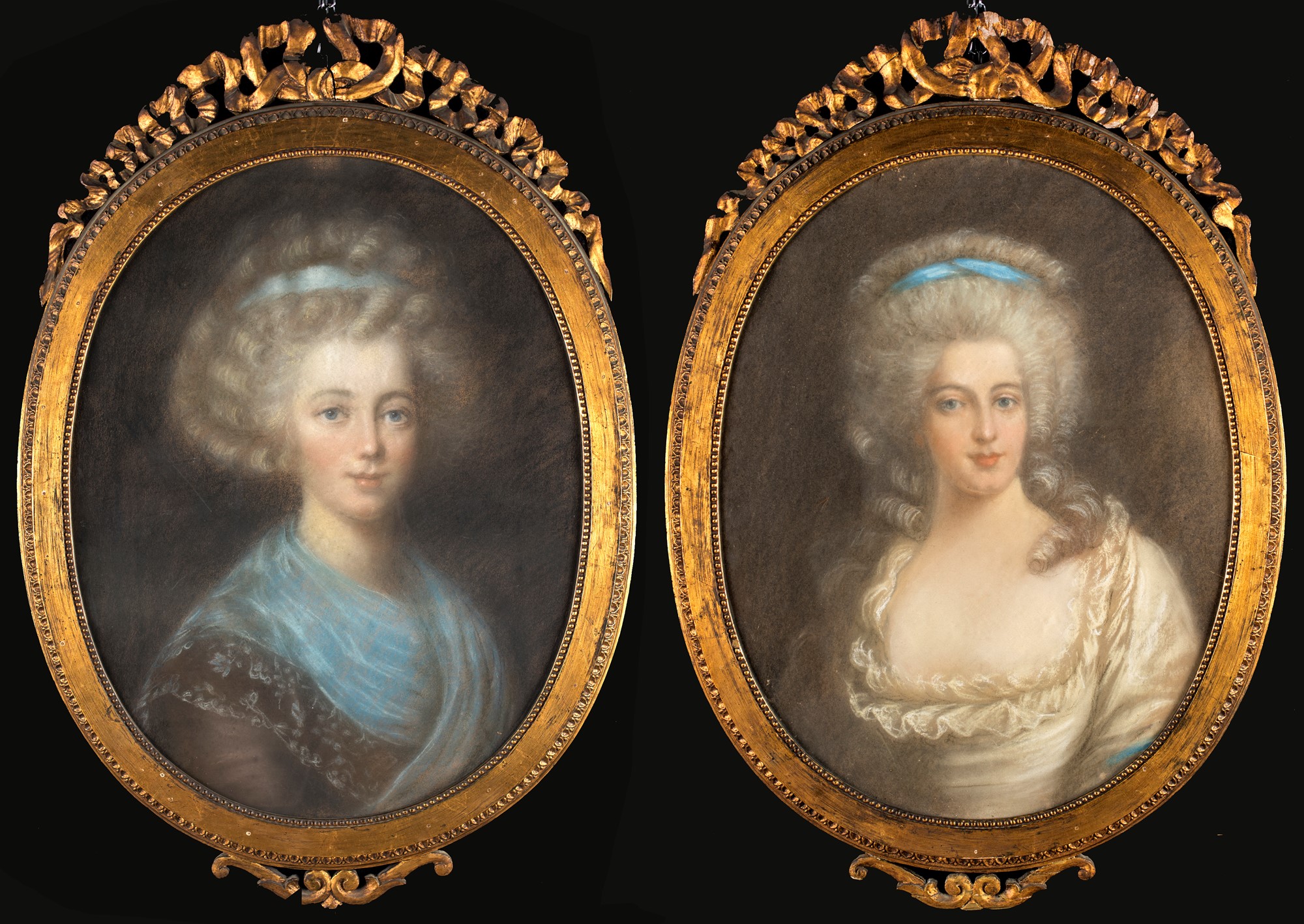 coppia di pastelli su carta ovale cm 64x50 - in cornice: cm 86x60 coppia di pastelli su carta ovale cm 64x50 - in cornice: cm 86x60 Entro cornici in legno dorato ornate sulla sommità da fregio intagliato