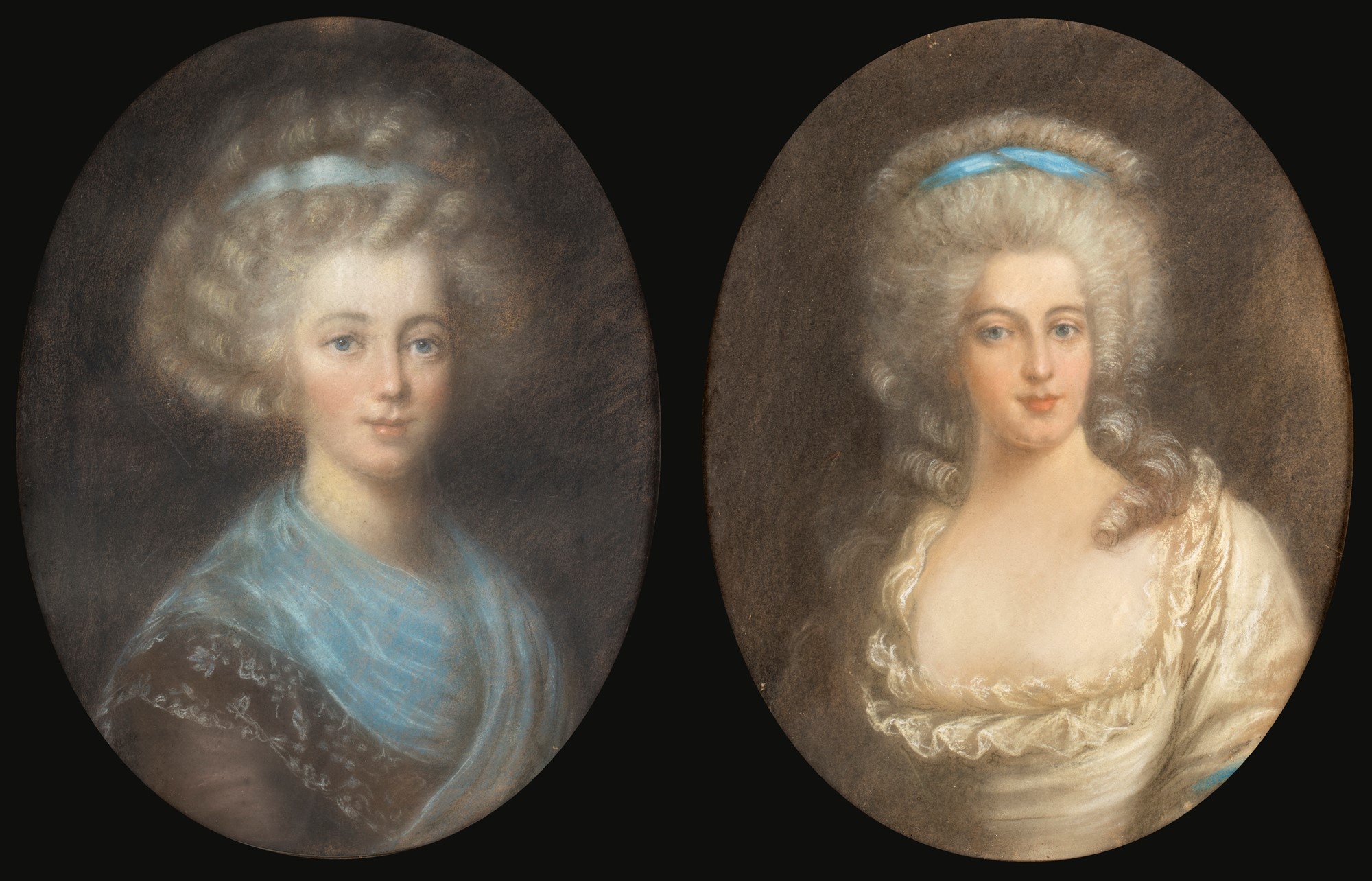a) Ritratto di gentildonna con scialle azzurro b) Ritratto di gentildonna in abito bianco