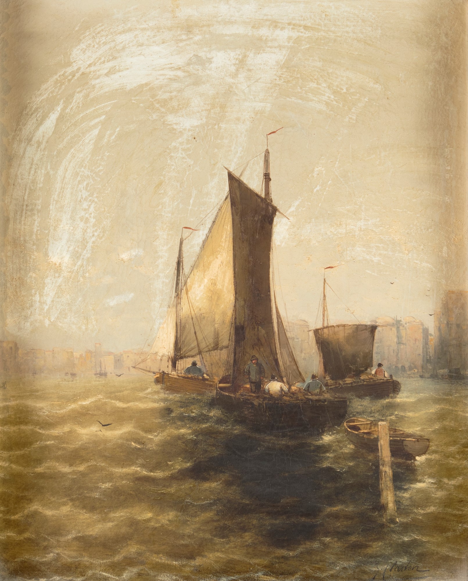 Lotto 381 | Pittore del XIX secolo Barche in laguna