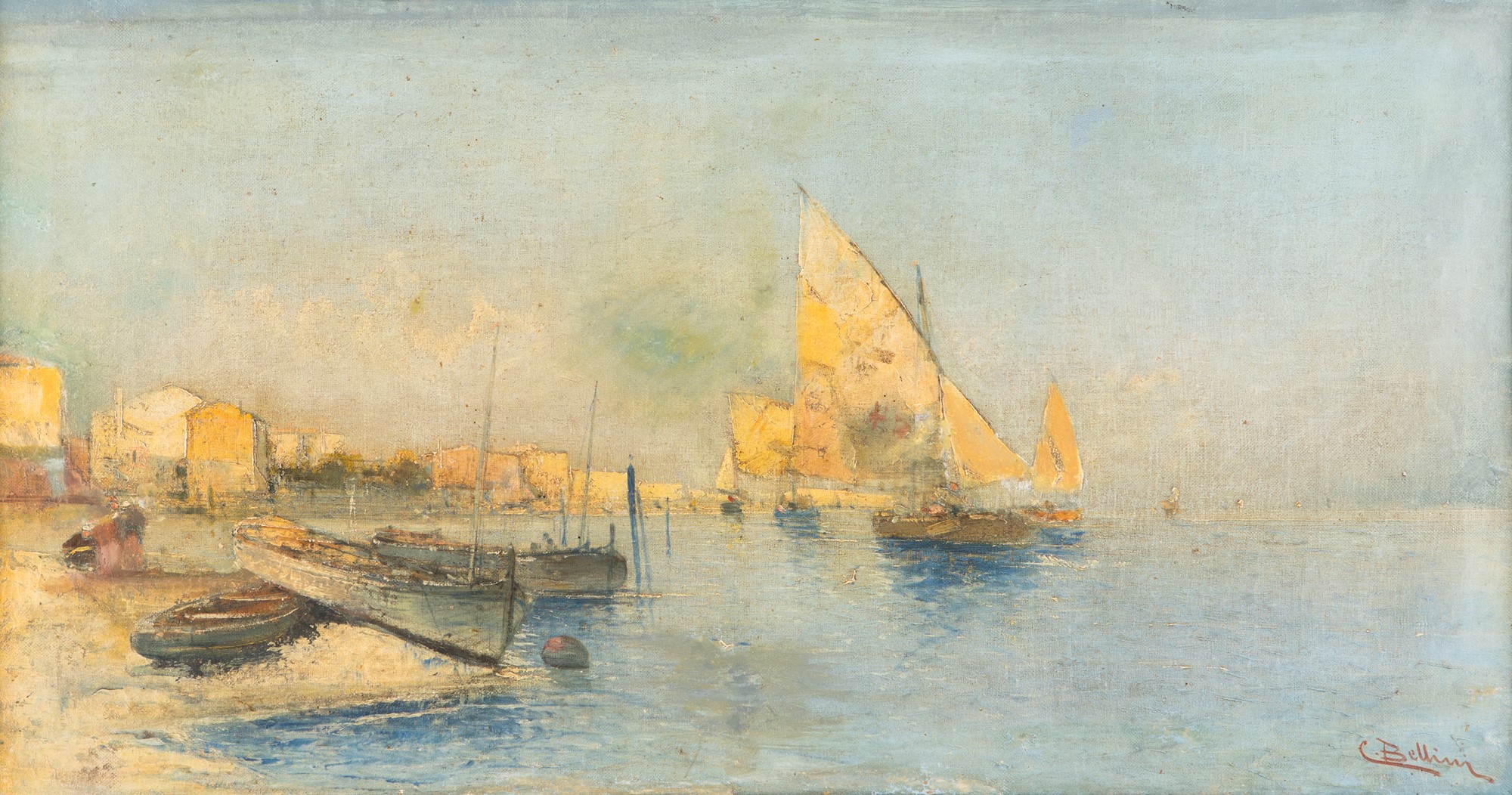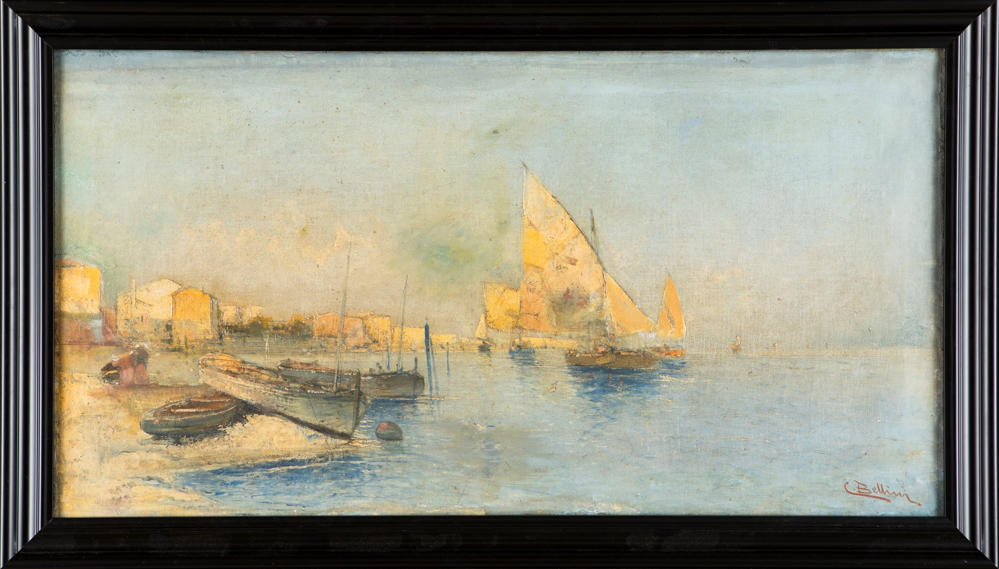 olio su tela cm 41x78 - con la cornice: cm 51,5x89 olio su tela cm 41x78 - con la cornice: cm 51,5x89 Firmato in basso a destra: C. Bellini