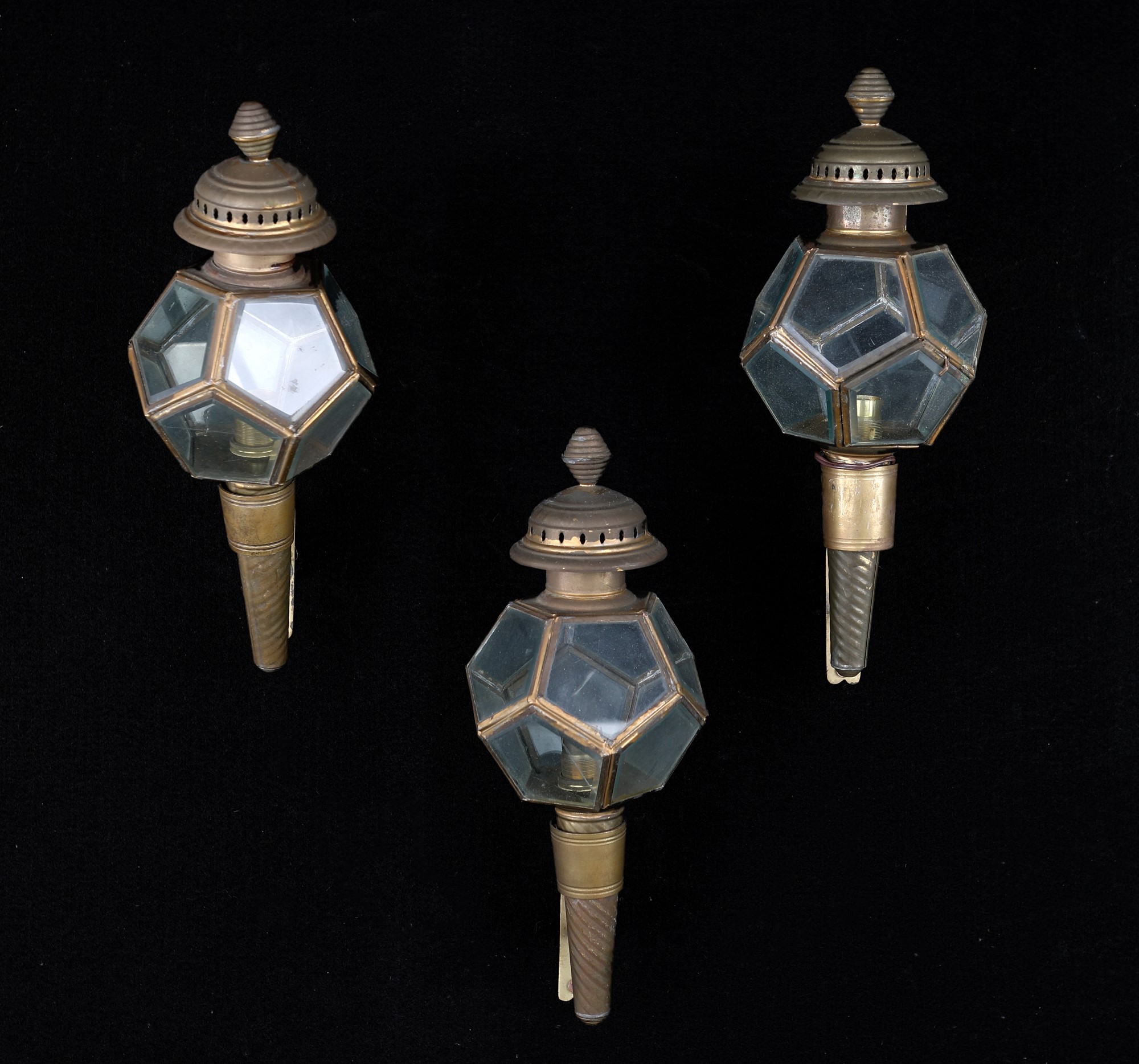Tre lanterne da carrozza in ottone, inizio del XIX secolo