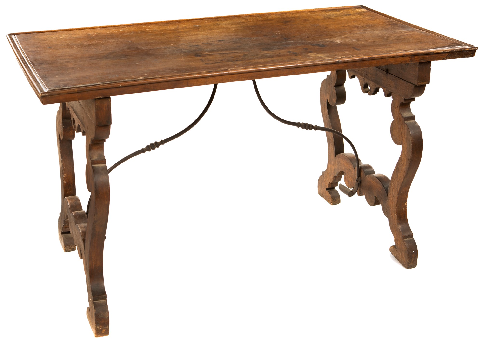 cm 83x144x73 cm 83x144x73 con piano rettangolare dal profilo modanato, poggiante su sostegni sagomati riuniti da traverse sottopiano in ferro