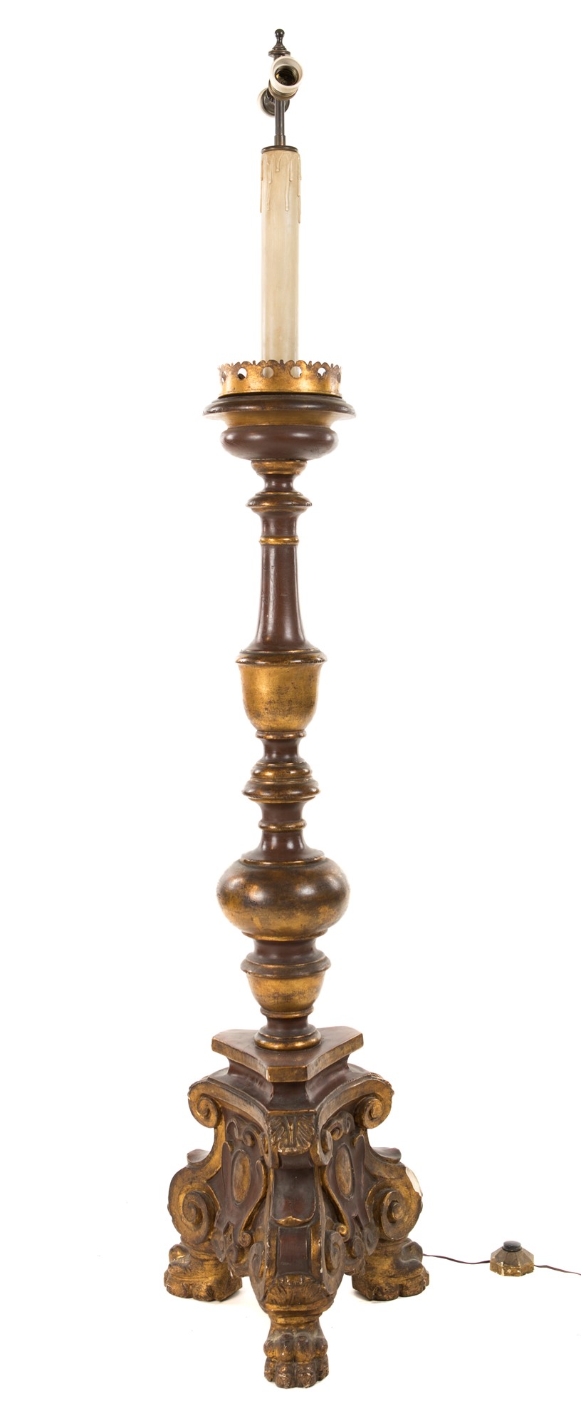 Lotto 424 | Grande torciera in legno dipinto e dorato, XIX secolo