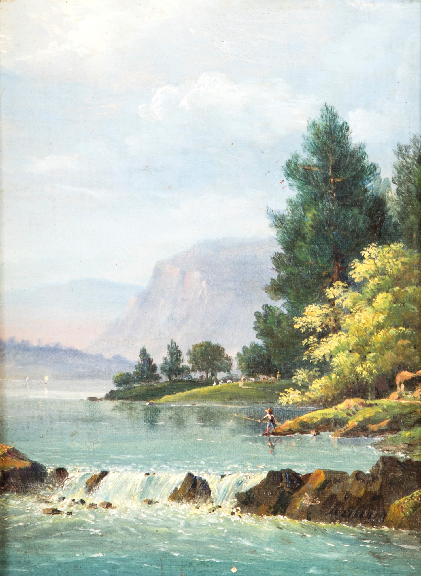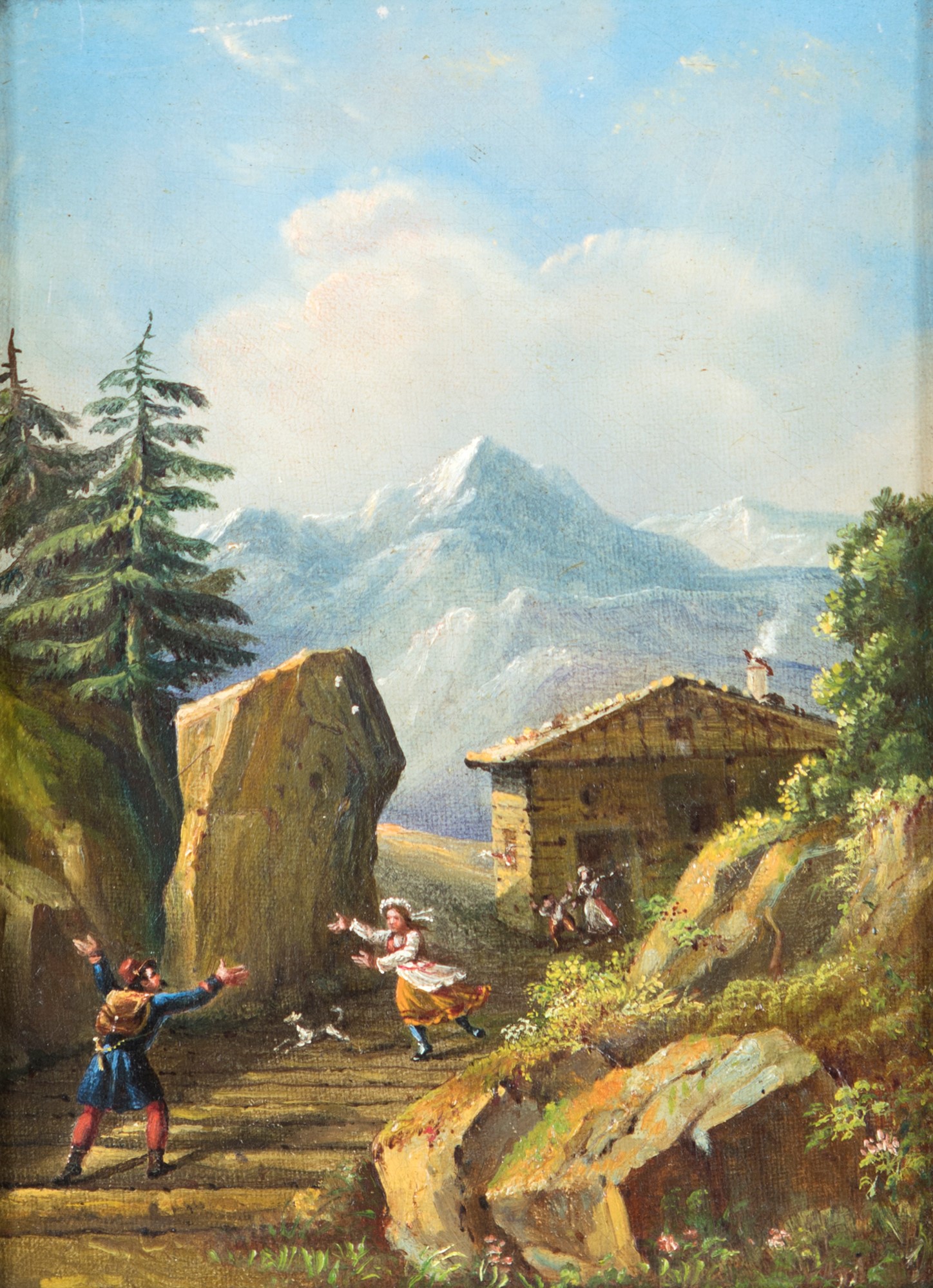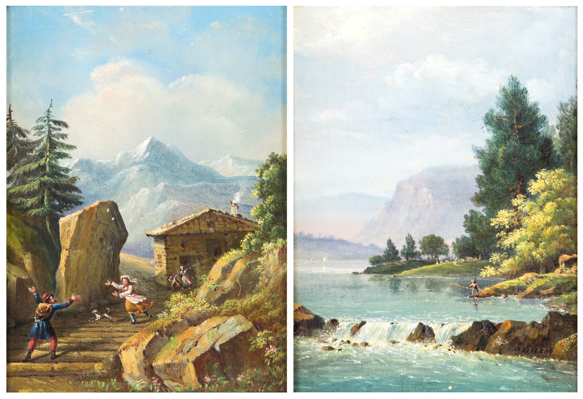 Scuola francese del XIX secolo a) Ritorno del soldato dal fronte b) Paesaggio con pescatore