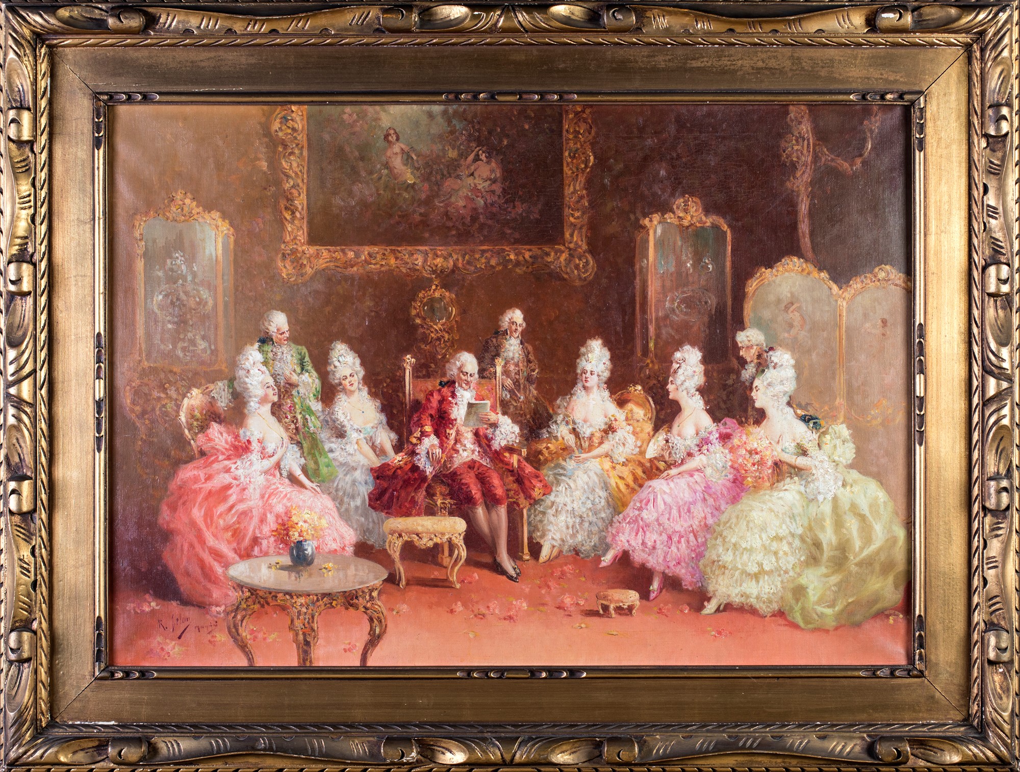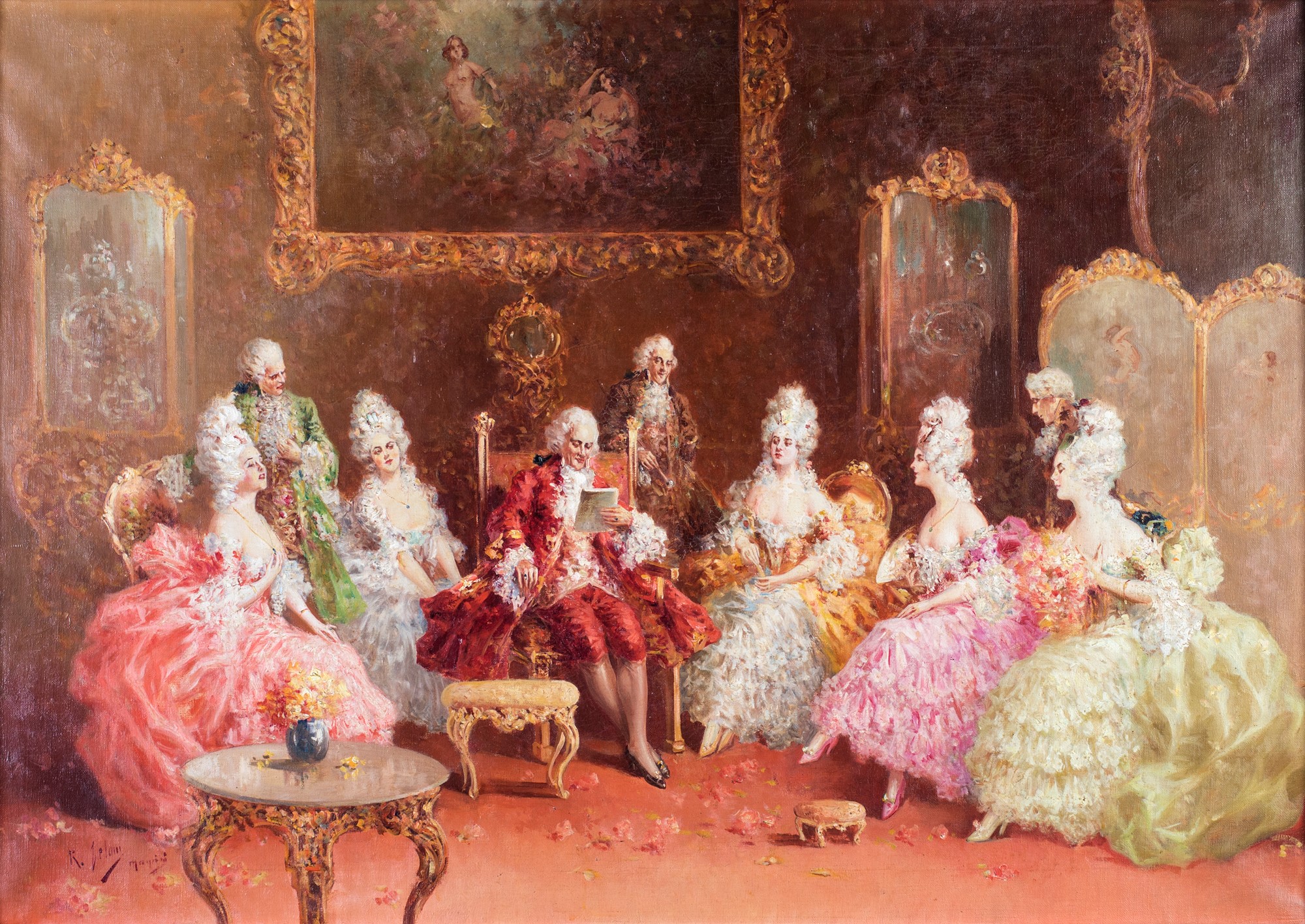 Raffaele Zeloni (attivo in Italia tra il XIX e il XX secolo - ) Interno con figure in abiti settecenteschi
