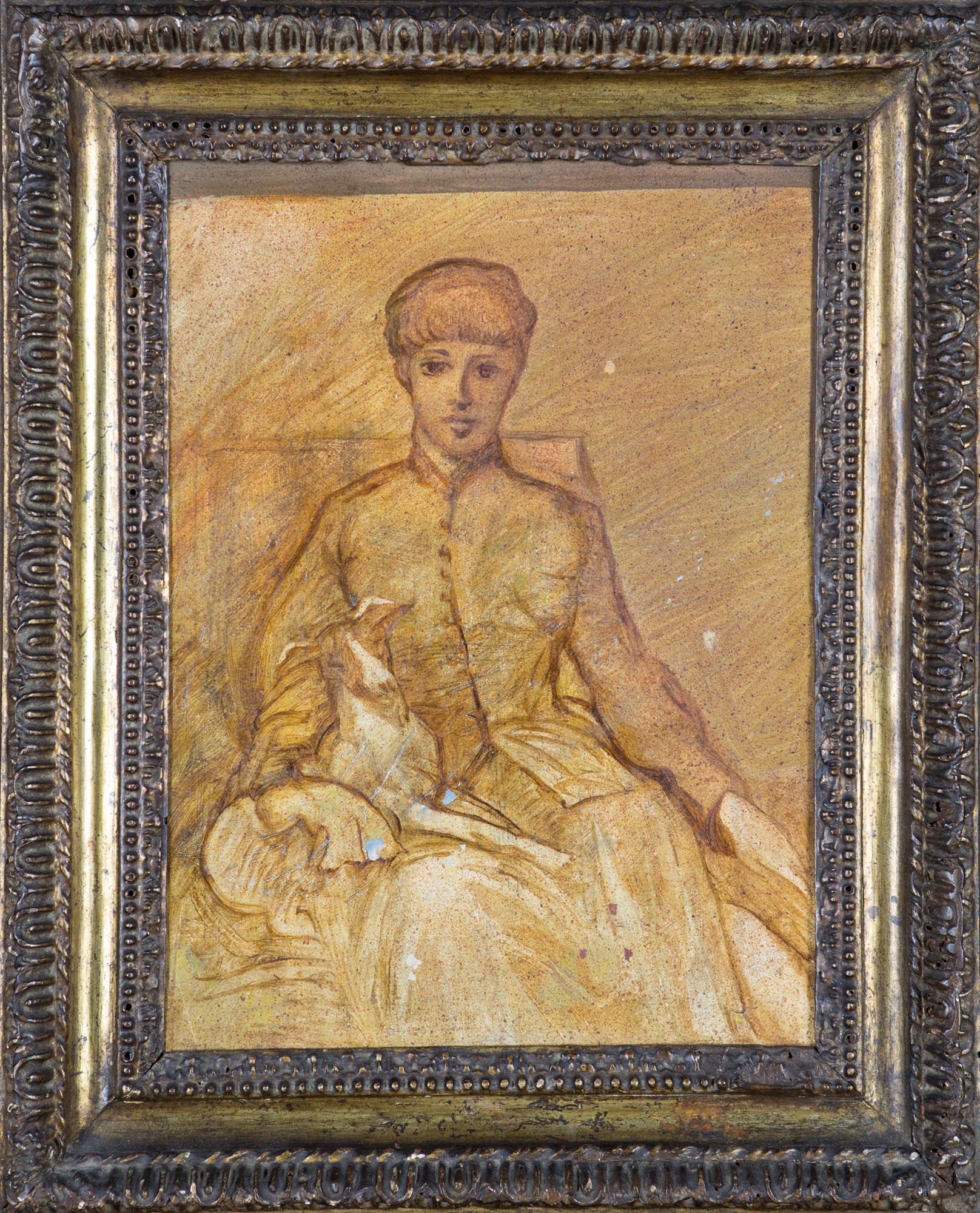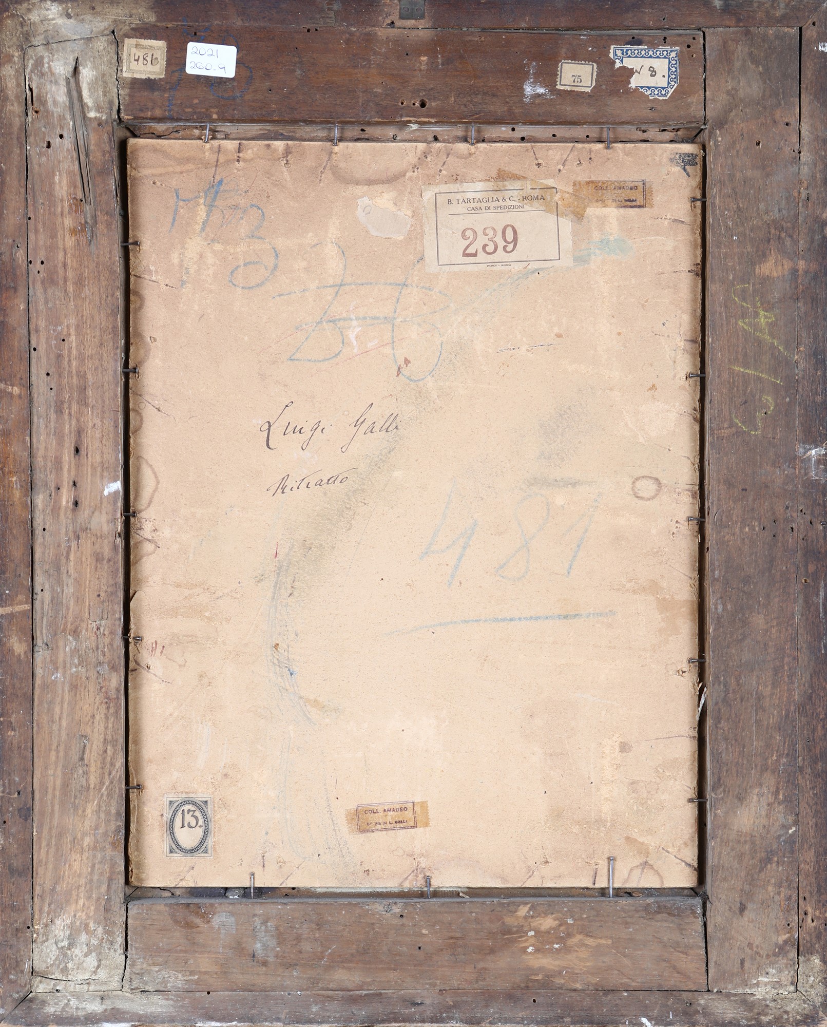 olio su cartone cm 41x33 - con la cornice: cm 58x47 olio su cartone cm 41x33 - con la cornice: cm 58x47 Iscritto al verso: Luigi Galli Ritratto; timbro della collezione Amadeo