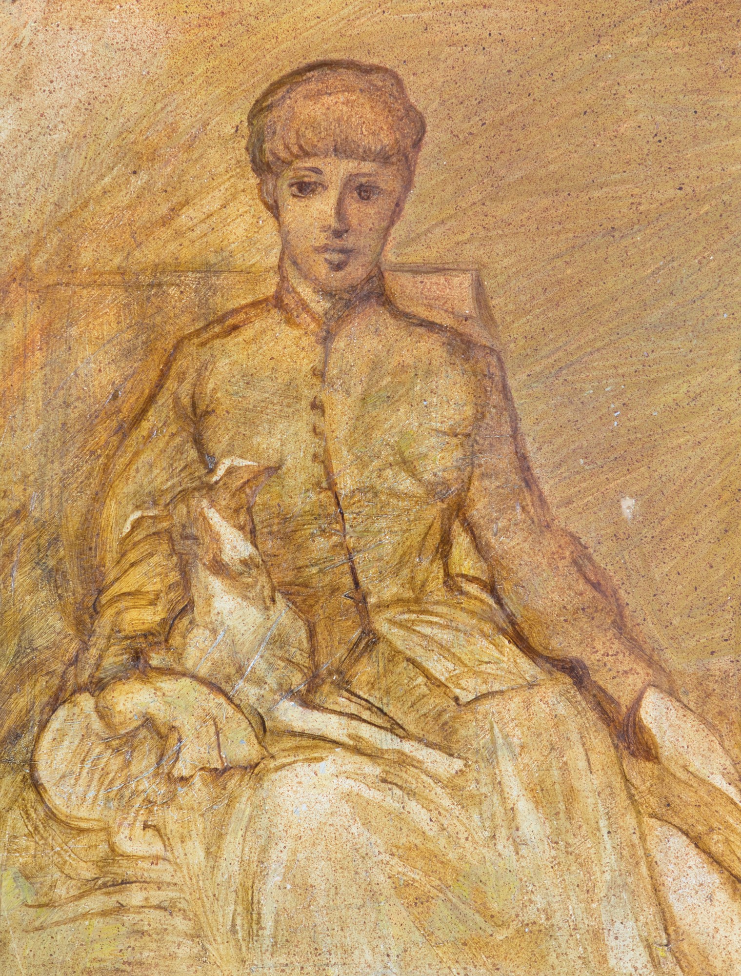Luigi Mauro Galli (Milano, 1817 - Roma, 1900) Ritratto di donna con levriero