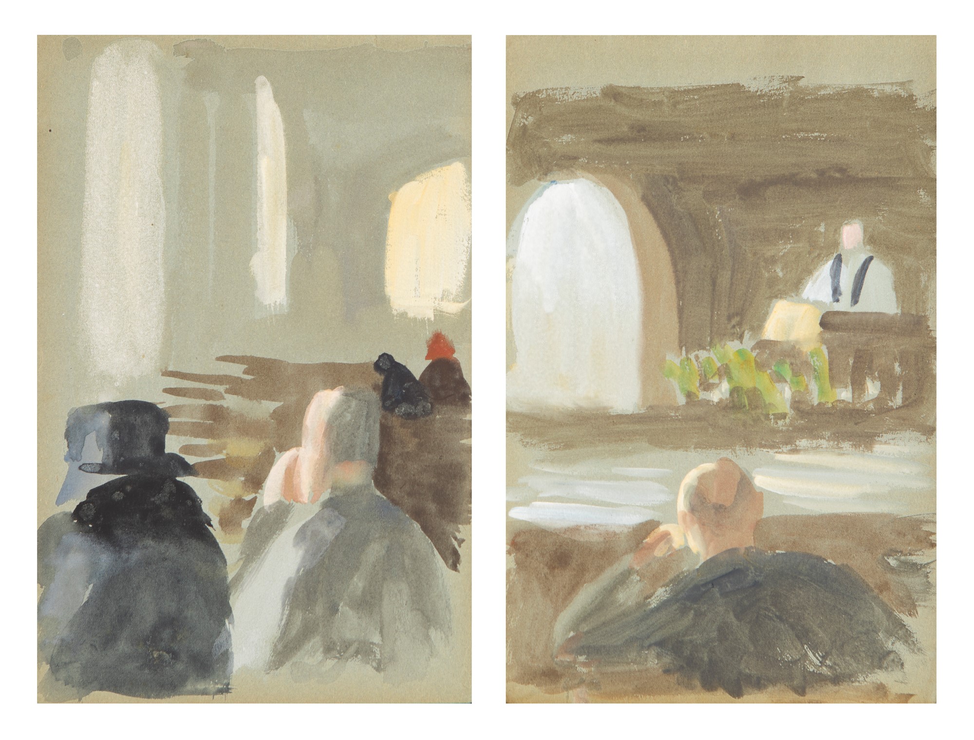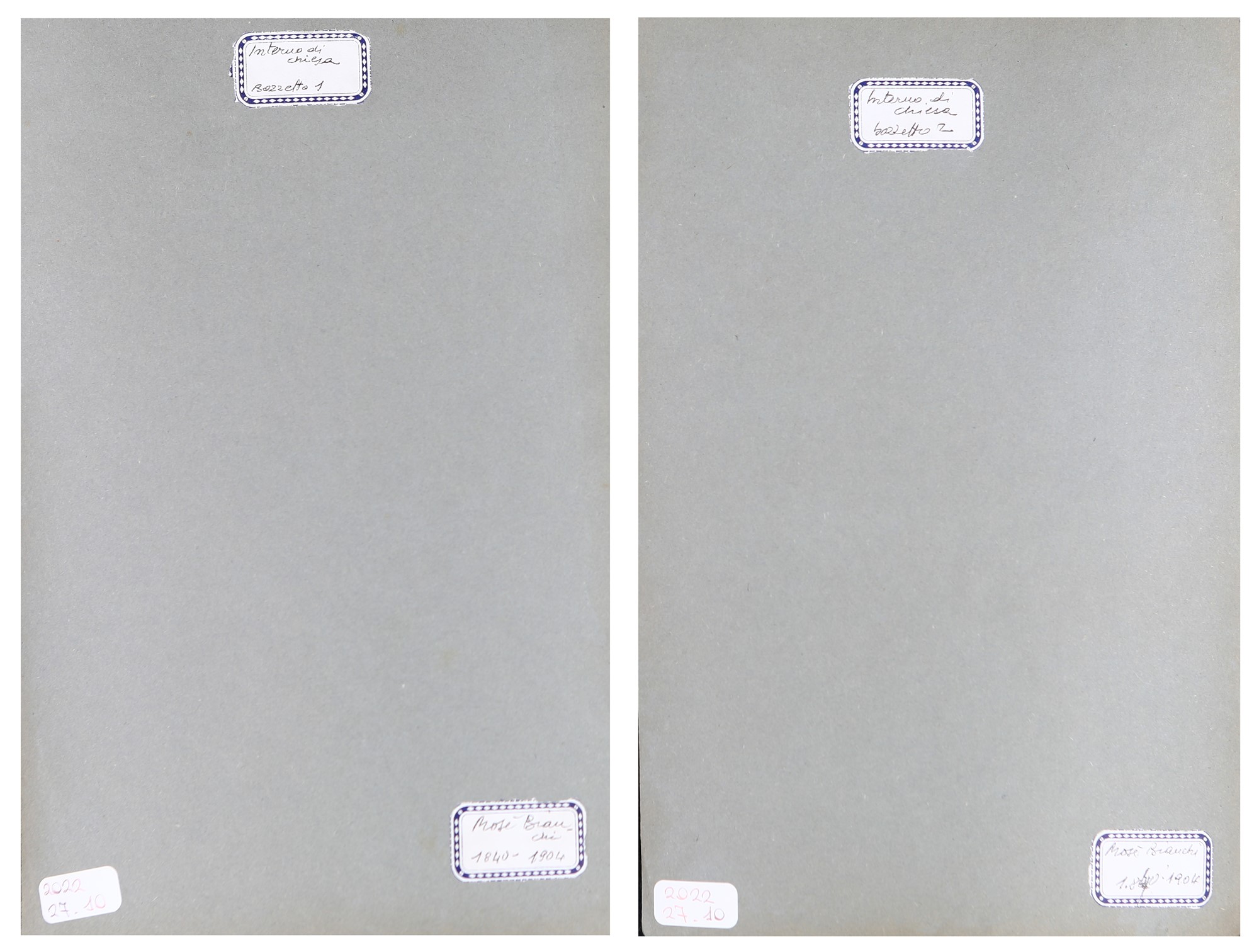 coppia di tempere e biacca su carta cm 28x18 s.c. coppia di tempere e biacca su carta cm 28x18 s.c. Al verso di ciascun foglio, etichette di collezione con iscritto: Mosè Bianchi, Interno di chiesa, bozzetto 1 e bozzetto 2