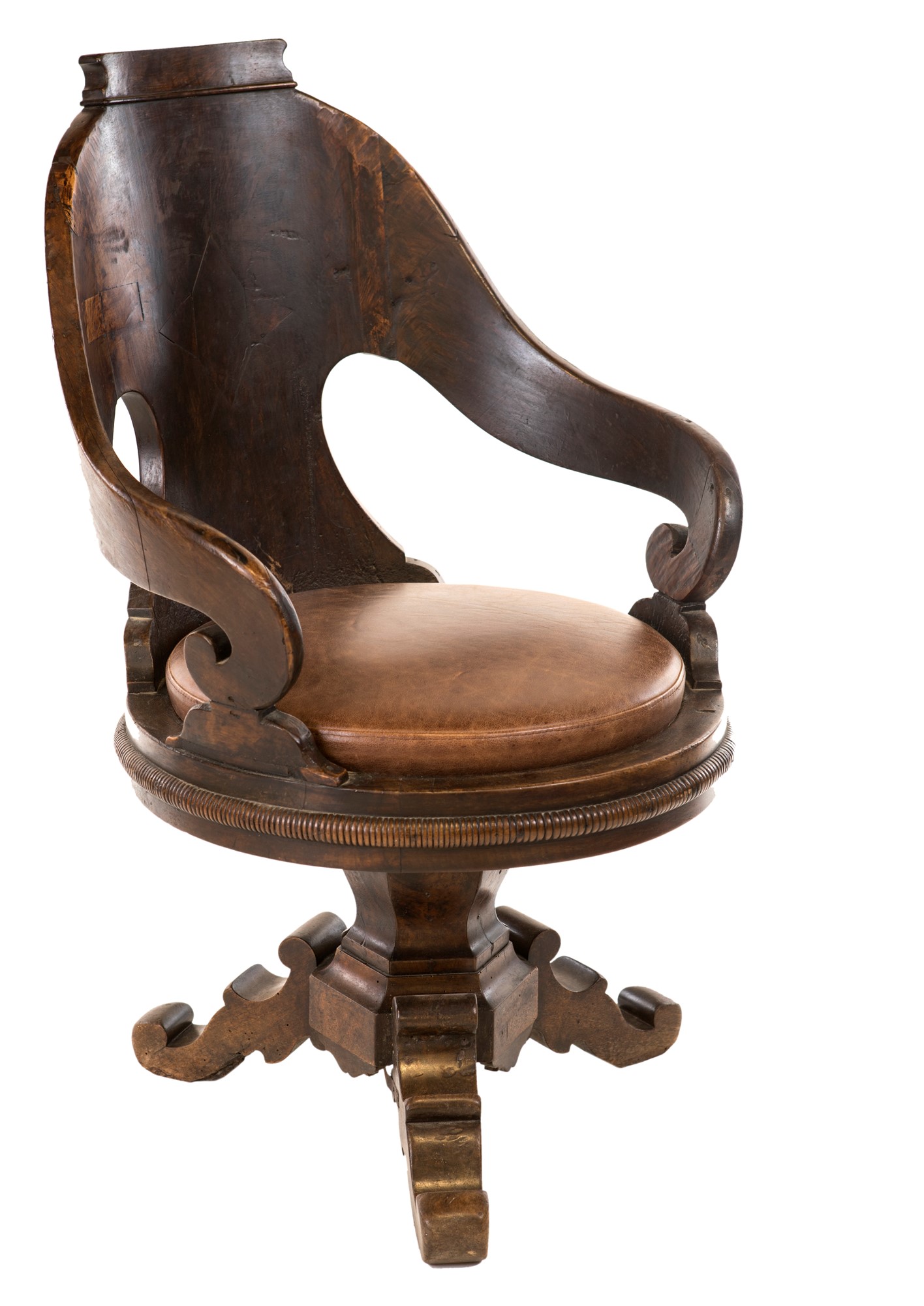 cm 97x61x55 cm 97x61x55 con schienale avvolgente e sedile girevole imbottito rivestito in cuoio; mancante il poggiatesta
