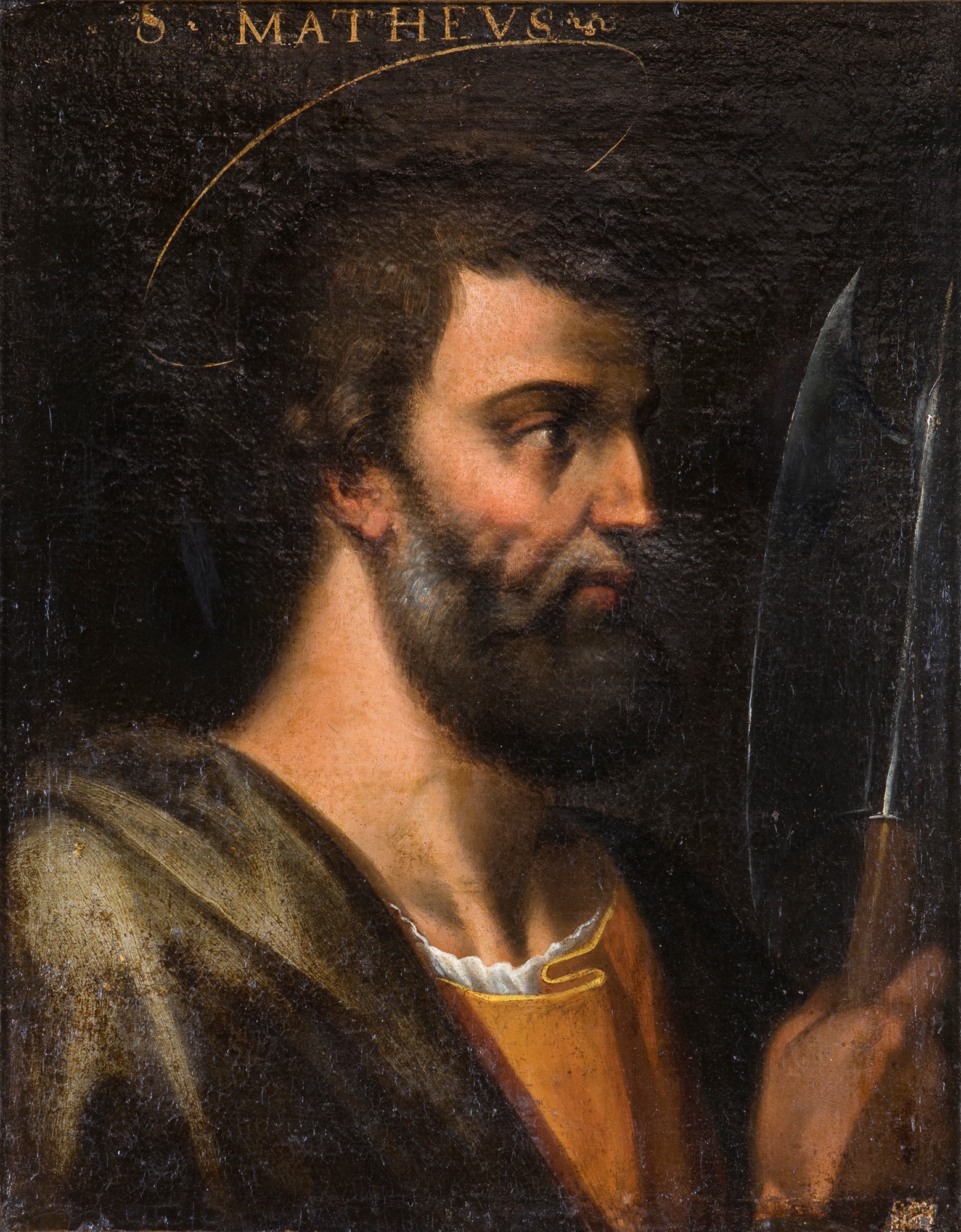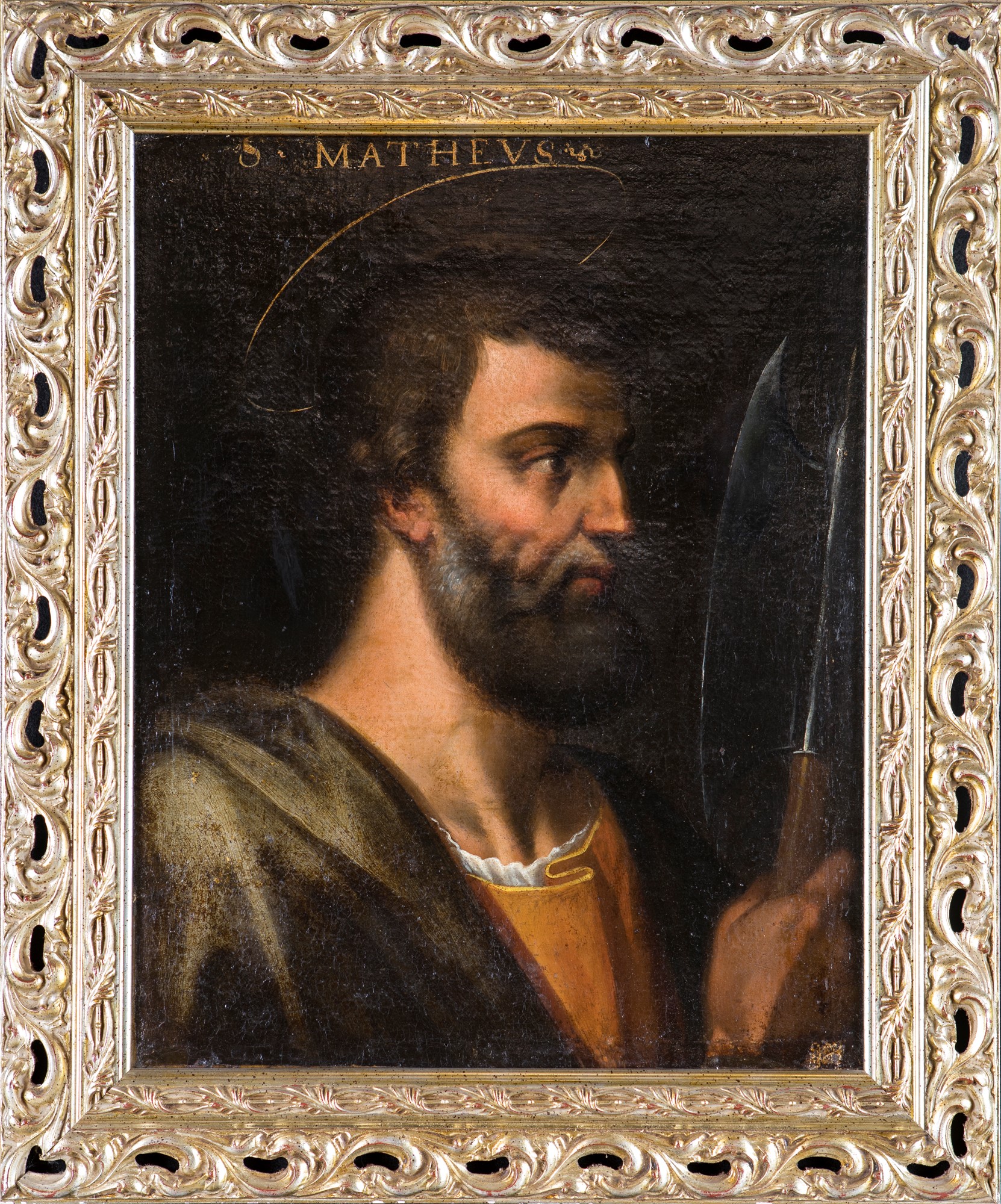 olio su tela cm 63x50 - in cornice: cm 82x68 olio su tela cm 63x50 - in cornice: cm 82x68 Dipinto raffigurante San Matteo apostolo, probabilmente parte di un ciclo.
