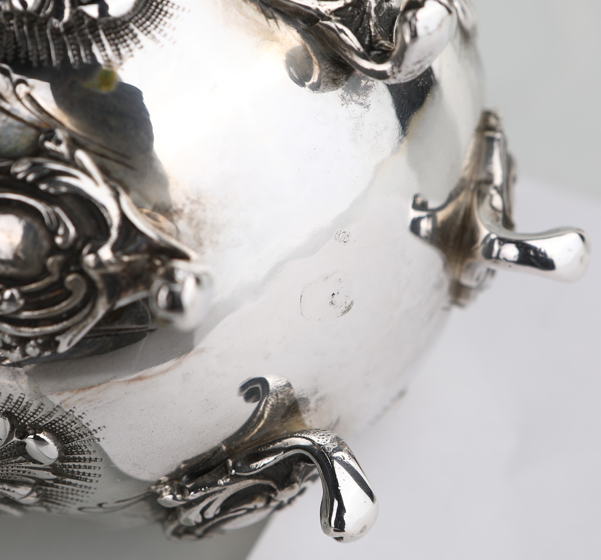 peso complessivo gr. 3368 peso complessivo gr. 3368 con decorazione a volute vegetali incise e sbalzate