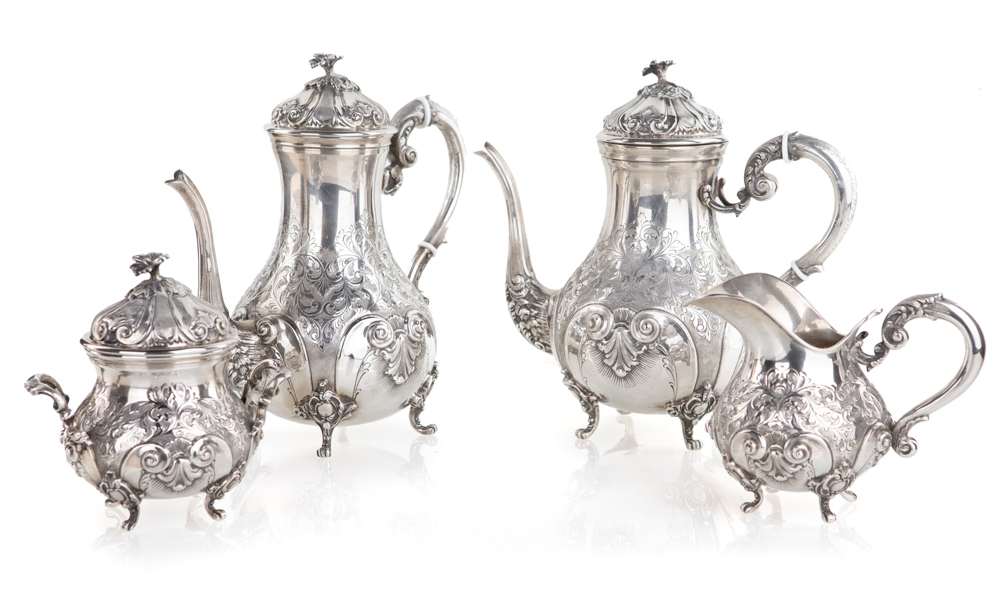 Servizio da tè in argento composto da quattro pezzi