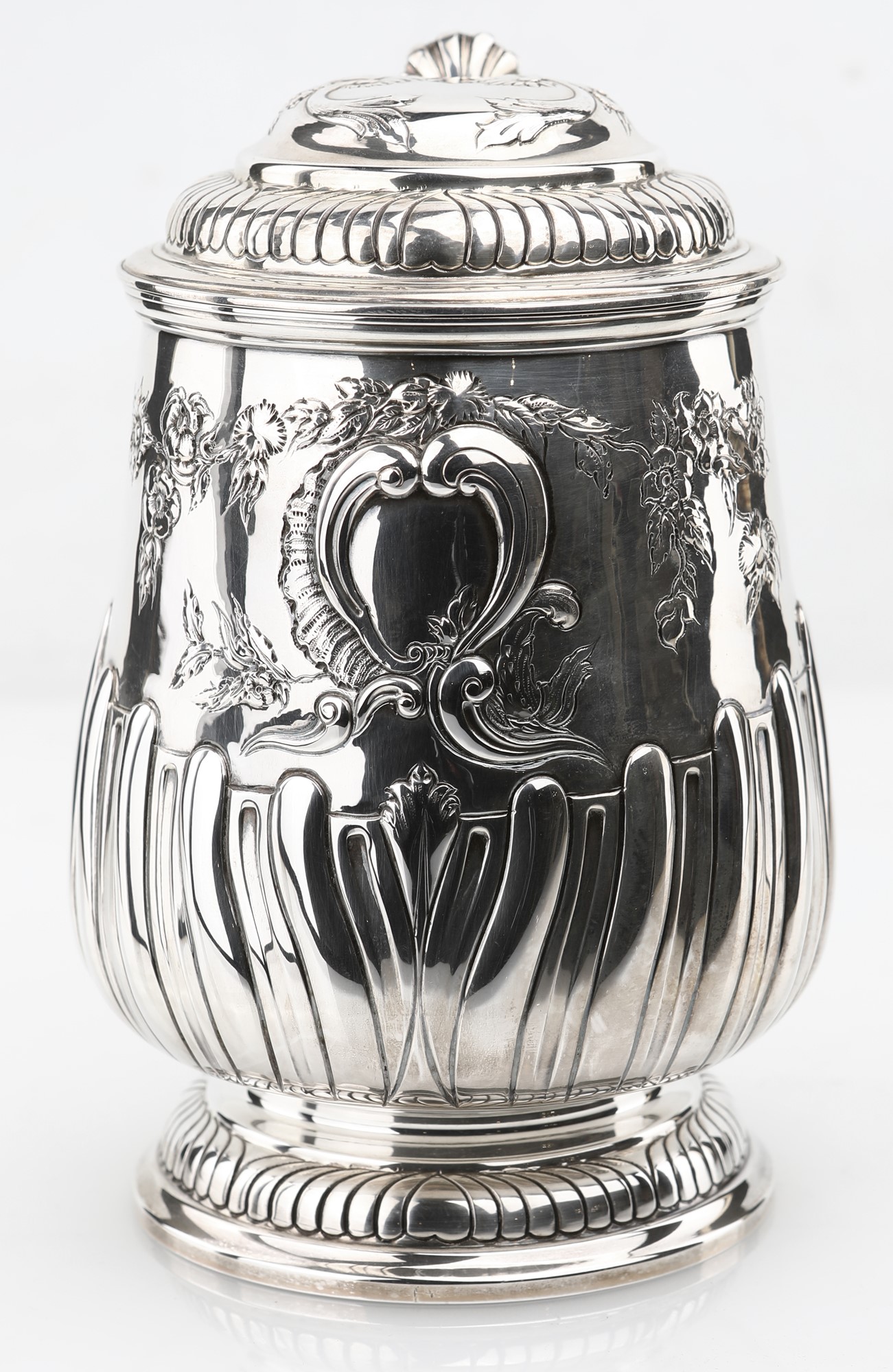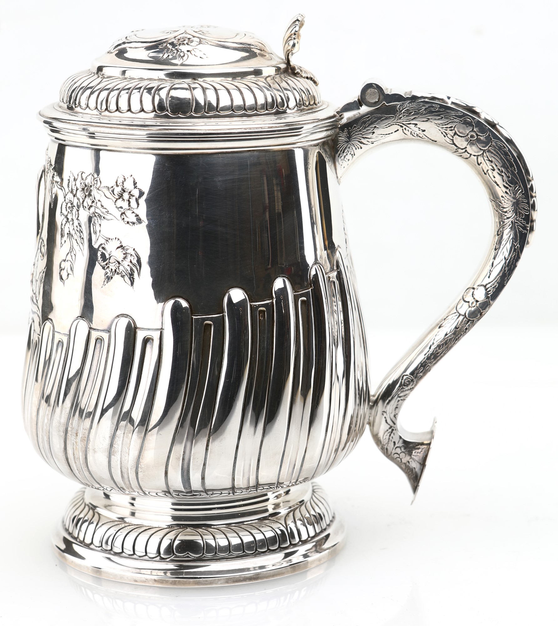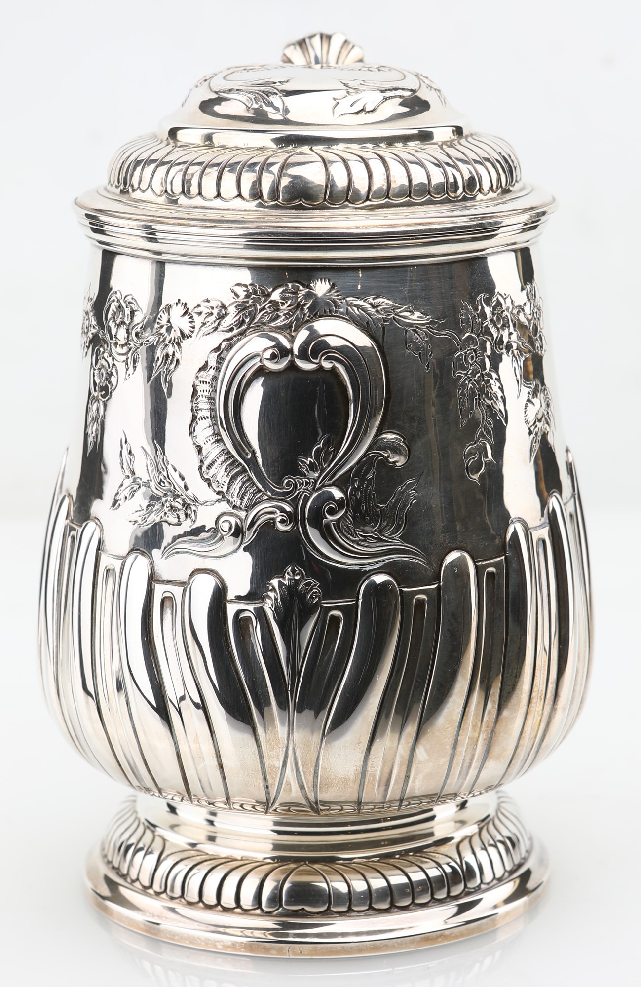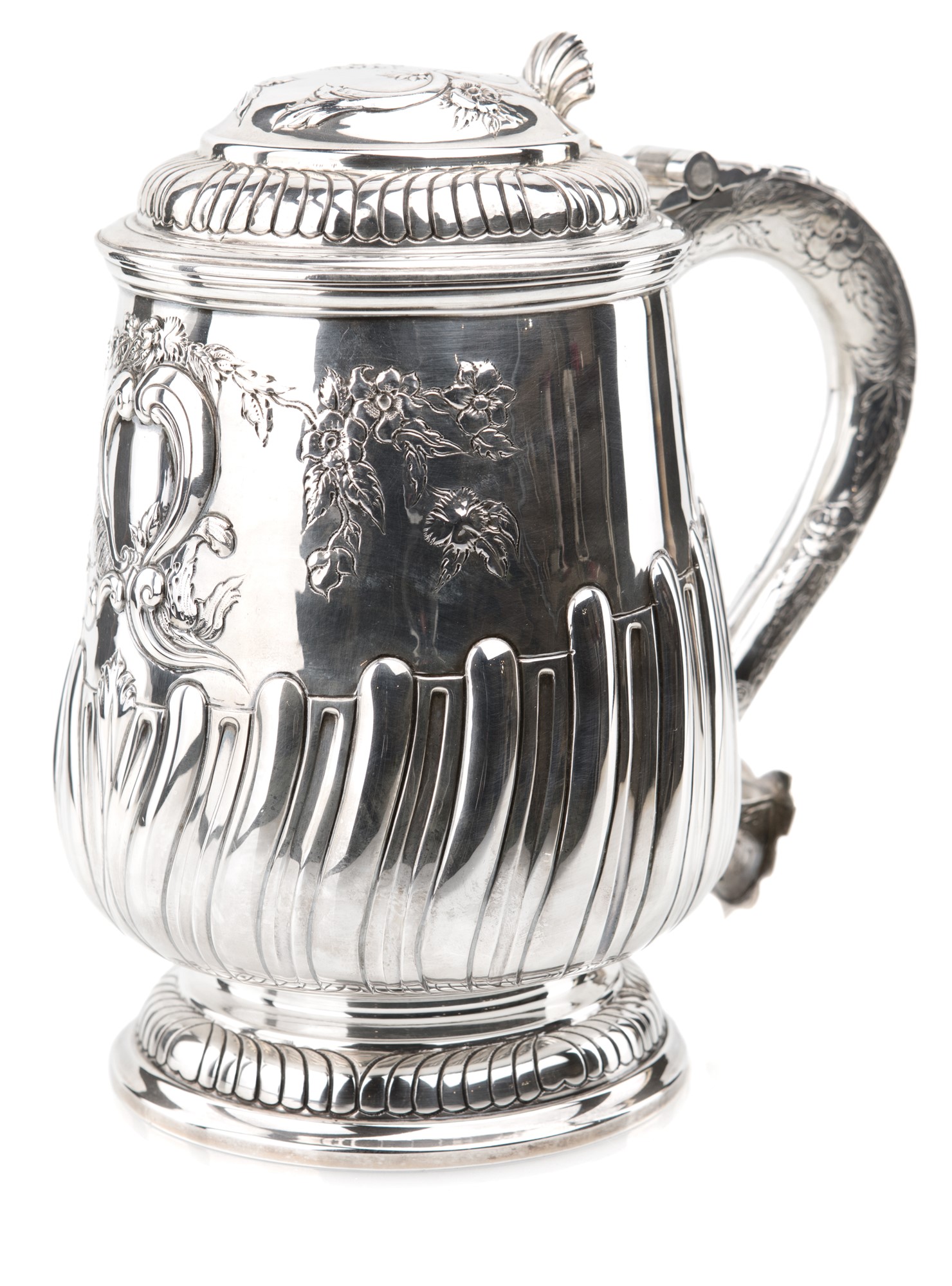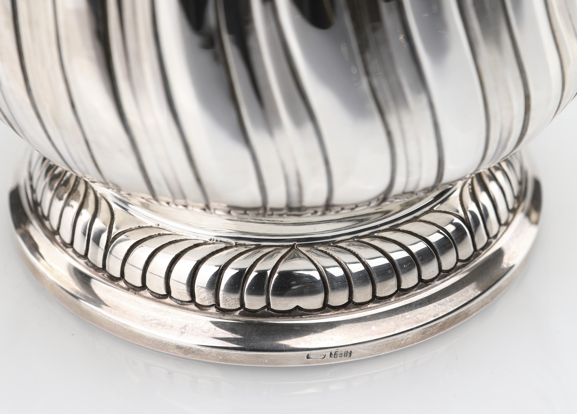 altezza cm 22 - gr. 1095 altezza cm 22 - gr. 1095 caratterizzato da lunghi baccelli alternati a scanalature e decorato da un cartiglio con tralci di fiori; coperchio dissaldato
