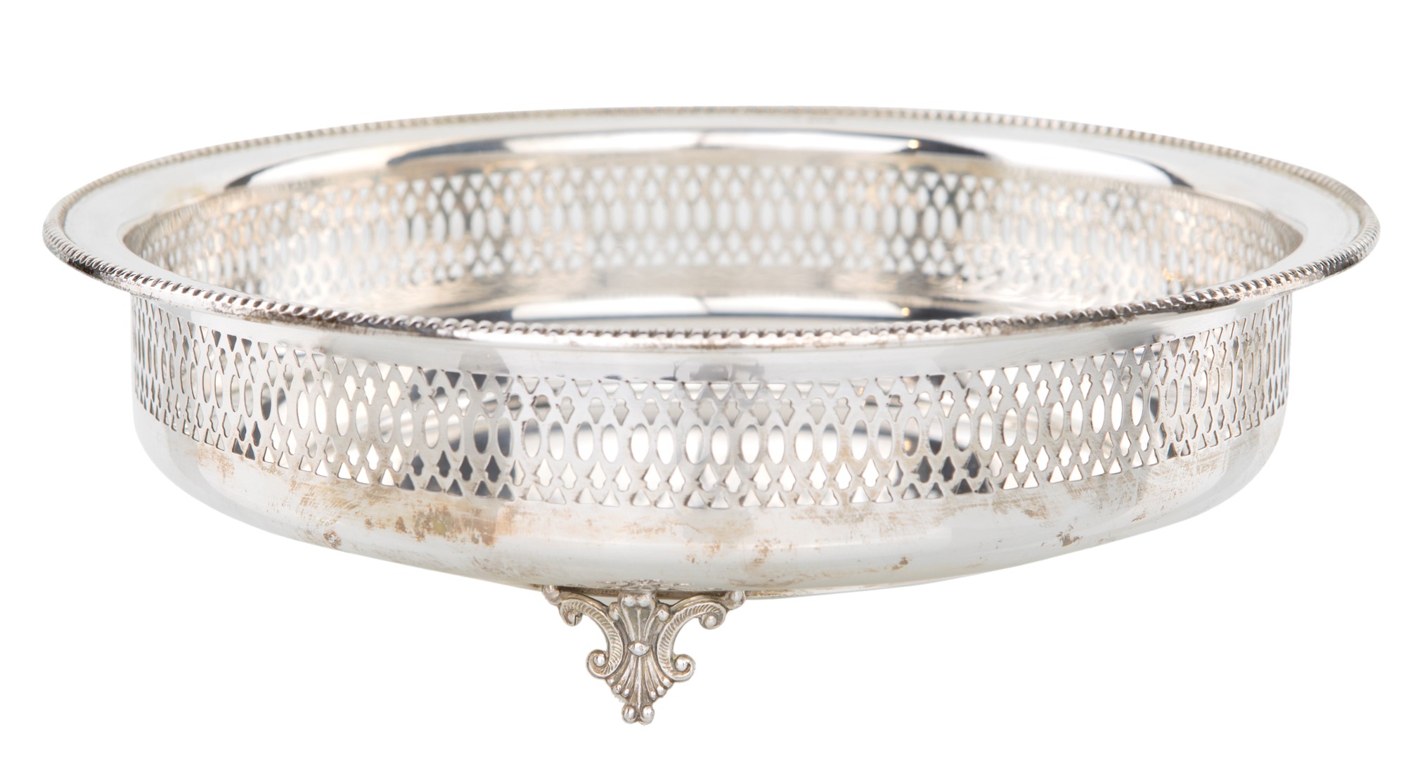 cm 6,5x21,5 - gr. 286 cm 6,5x21,5 - gr. 286 di forma circolare con ringhierina traforata, orlo perlinato e tre piedi a motivi vegetali