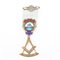 Distintivo con coccarda e spilla per il tricesimus del Croydon Lodge of Fortitude n° 5493 in oro 9 kt e smalti