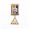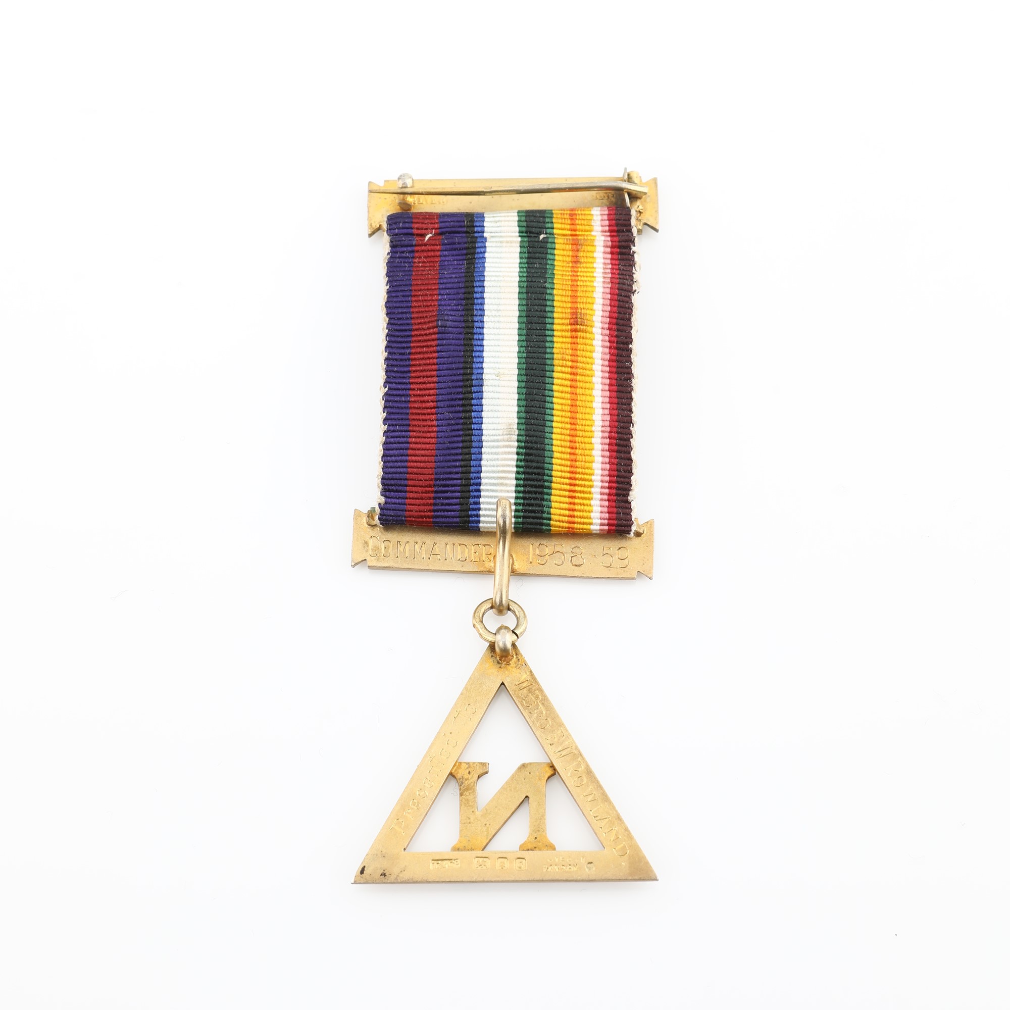 lunghezza con nastro cm 9,5 - gr. 28 lunghezza con nastro cm 9,5 - gr. 28 con miniatura circolare in smalti policromi con motto Tenax Propositi e pendente triangolare con lettera N. Inciso al verso: Commander 1958-59, Presented to W.Bro E.W.Rowland. Bollo della città di Londra con datario 1958-59 e dell'argentiere T. and co.