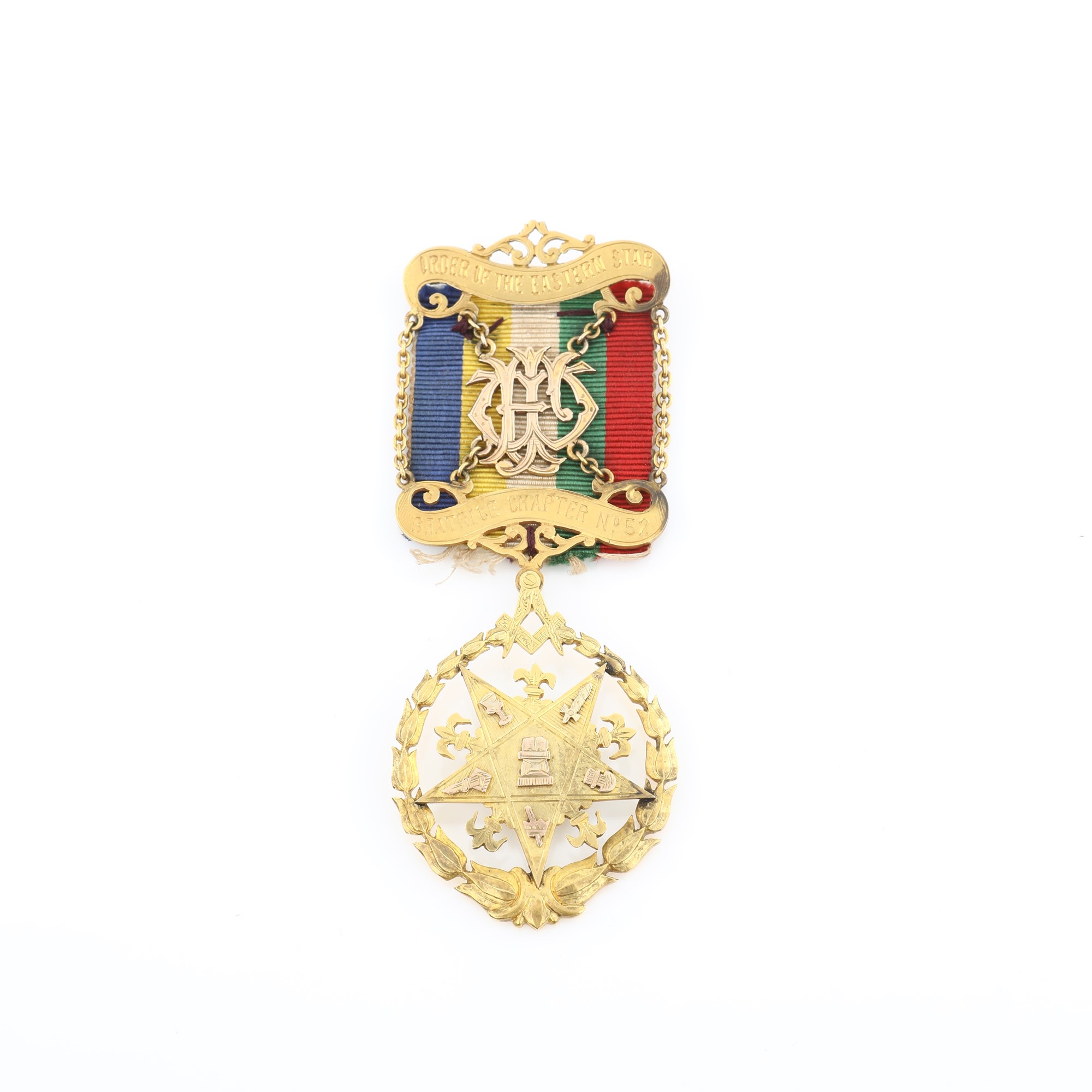 Distintivo con coccarda e spilla dell'Order of the Eastern Star interamente in oro 9kt