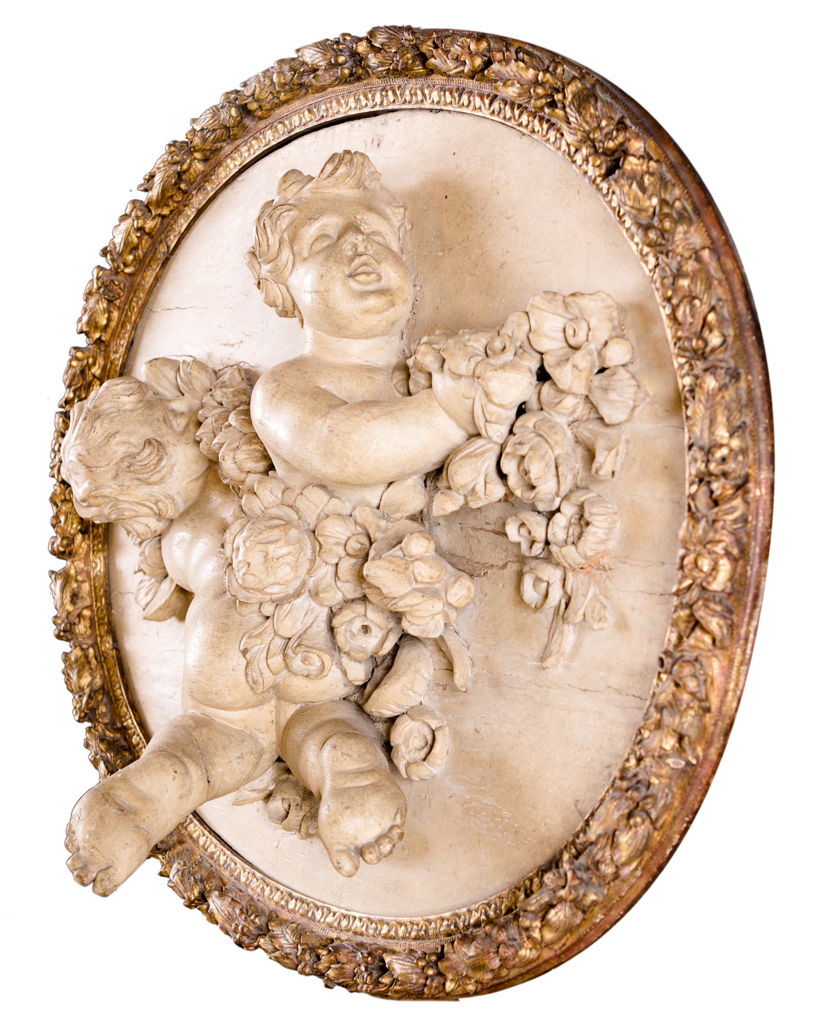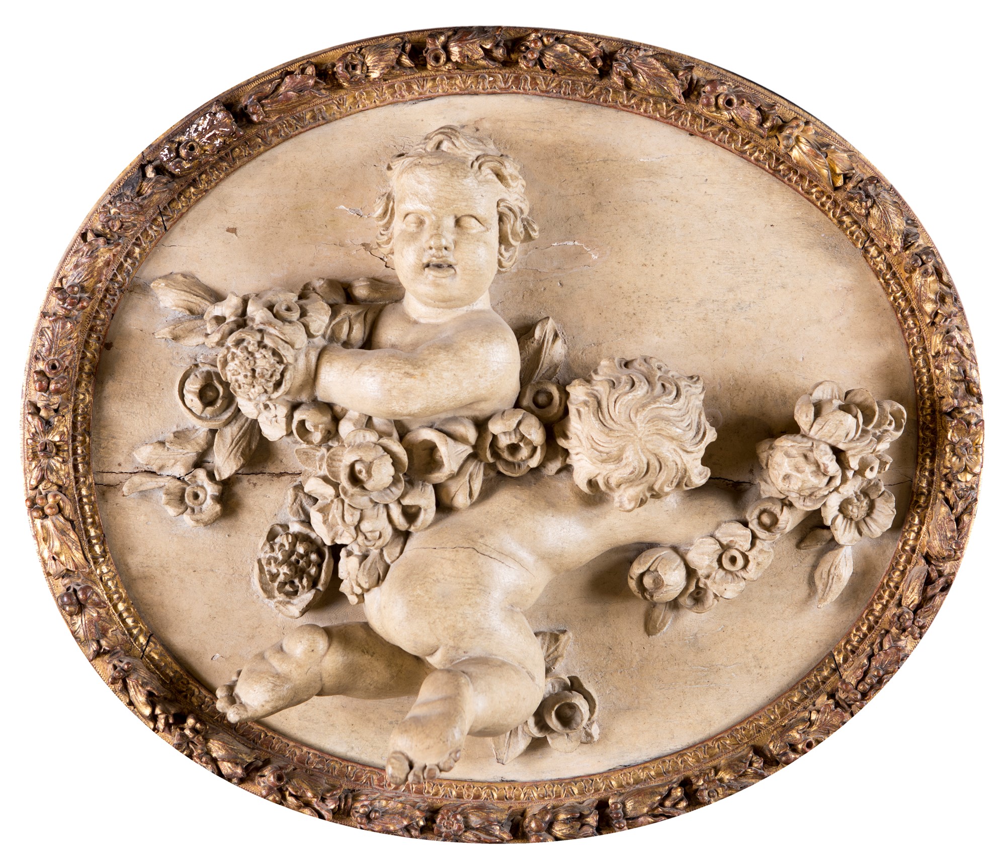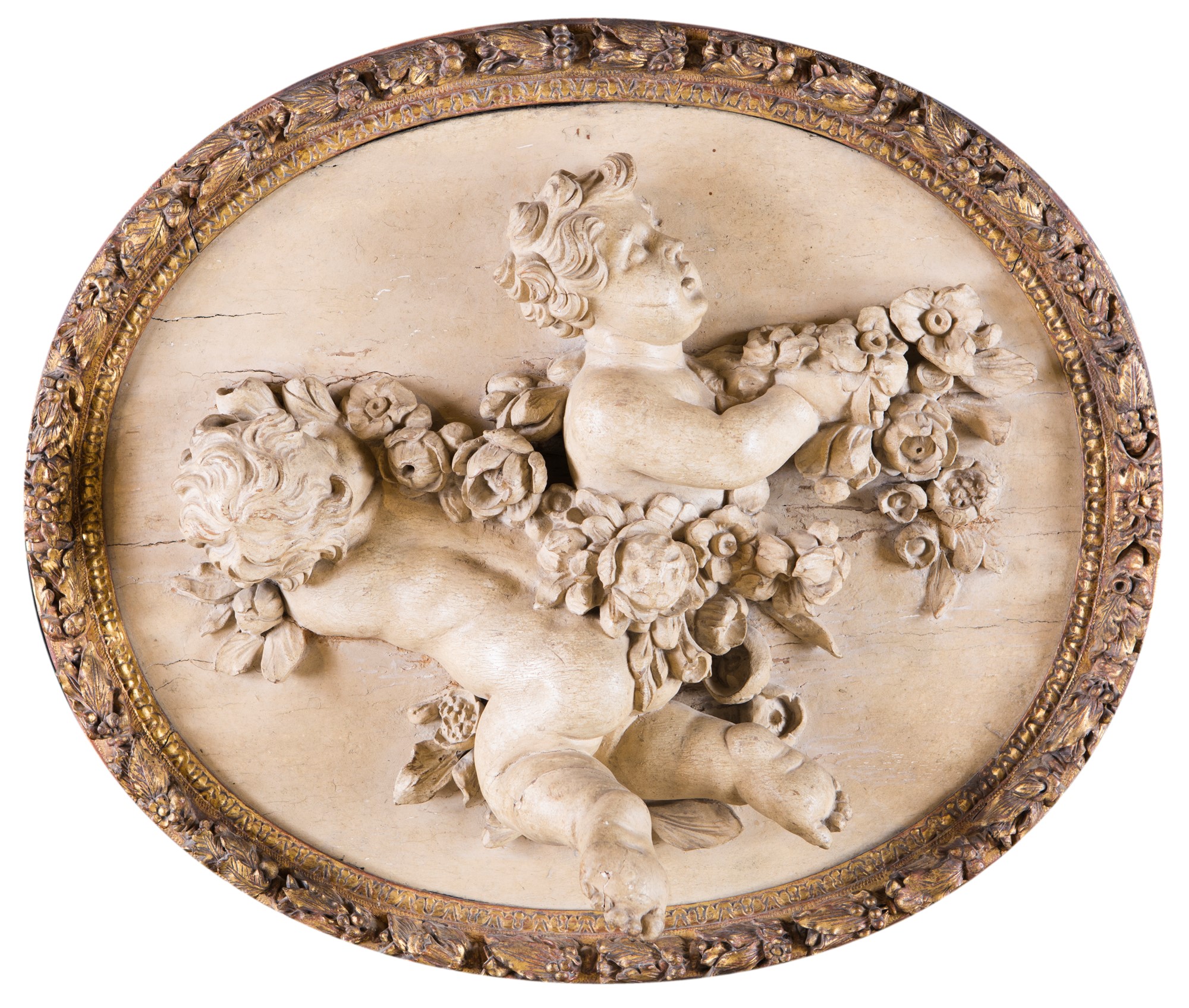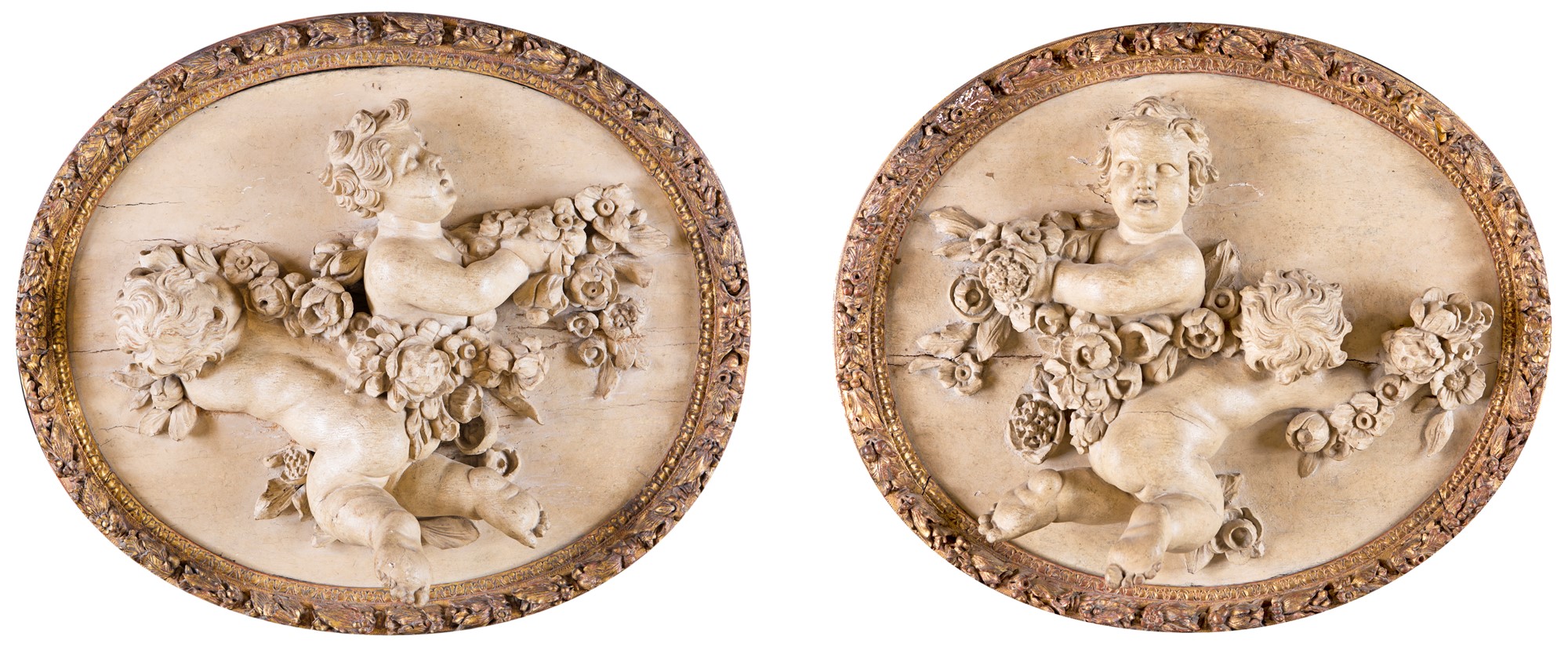 cm 70x80 cm 70x80 caratterizzati da figure di amorino racchiuse da profilo in forma di cornice intagliata e dorata percorsa da ghirlanda fiorita
