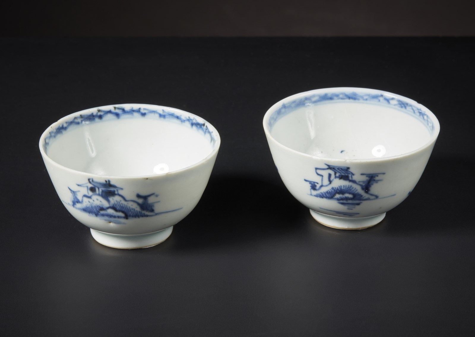 Arte Cinese - Coppia di tazze in ceramica bianco/blu Cina, dinastia Qing, XVIII secolo .