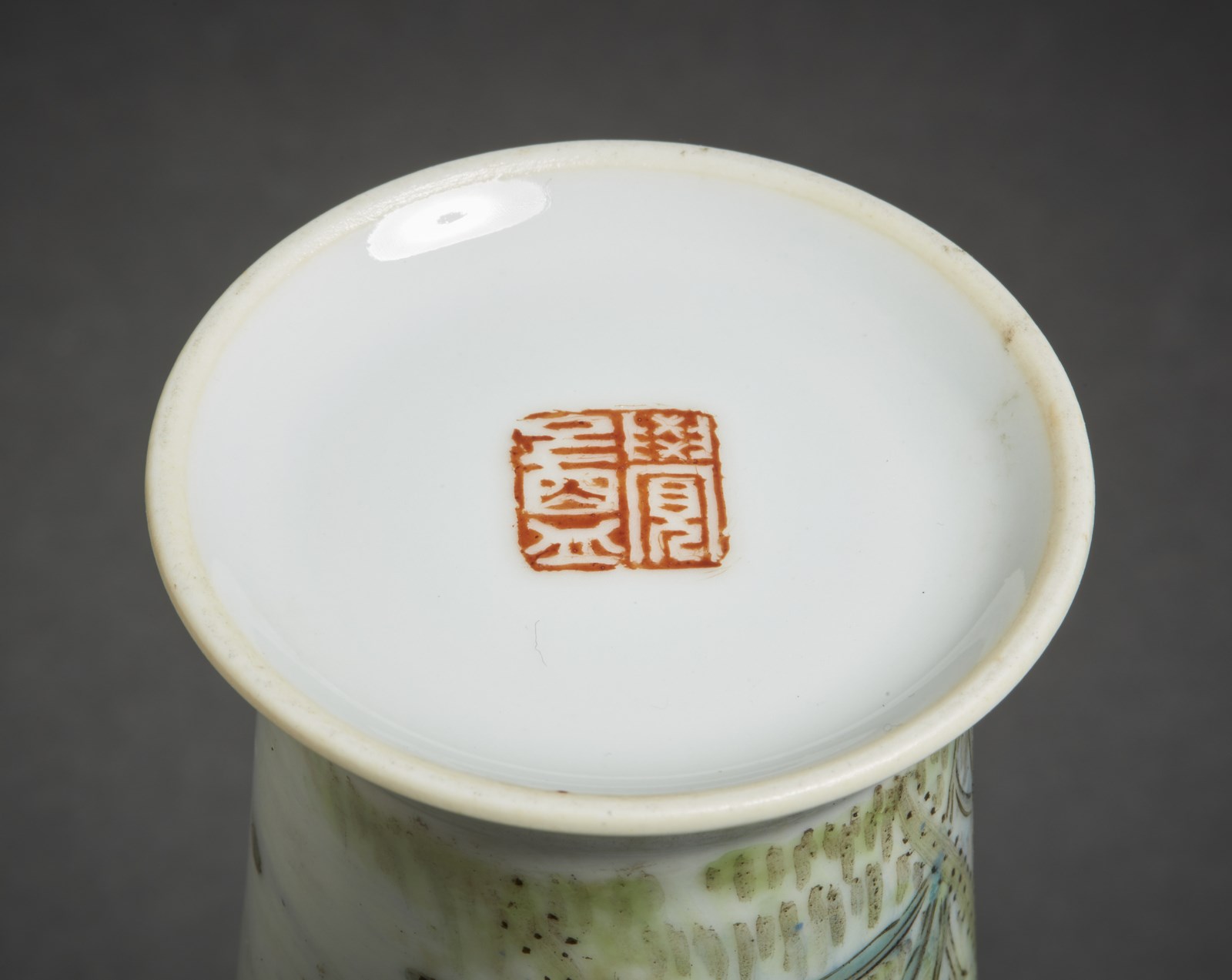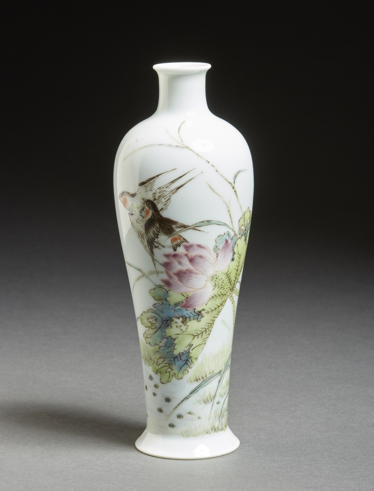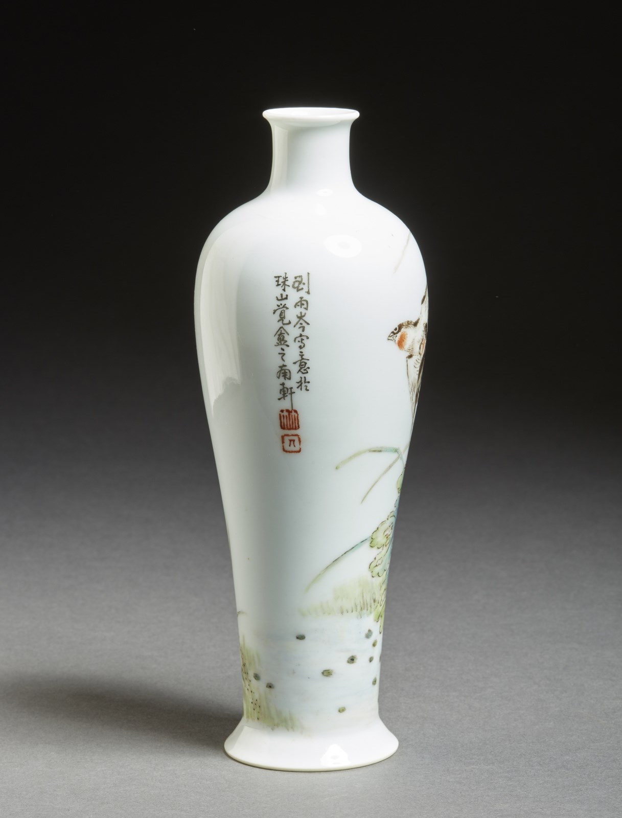 Arte Cinese - Vaso a balaustro decorato con uccello ed iscrizioni Cina, XX secolo .