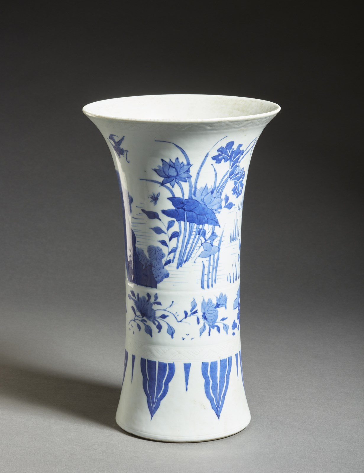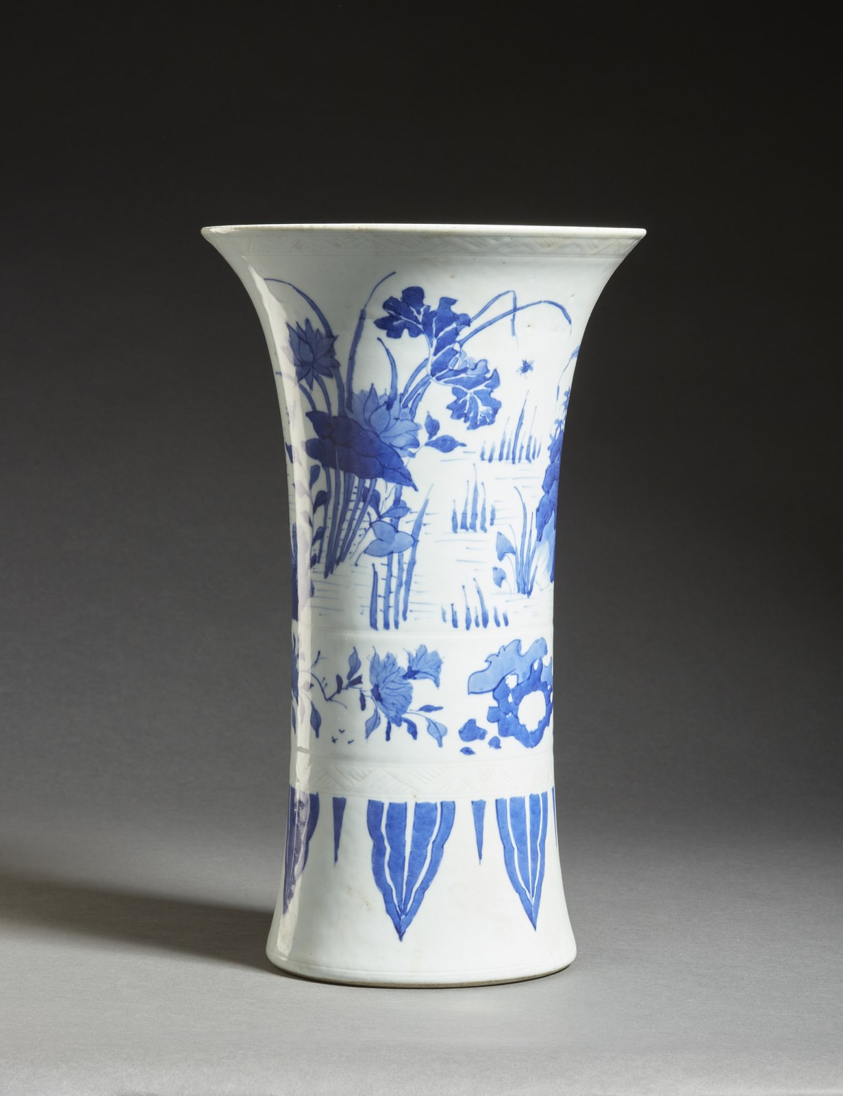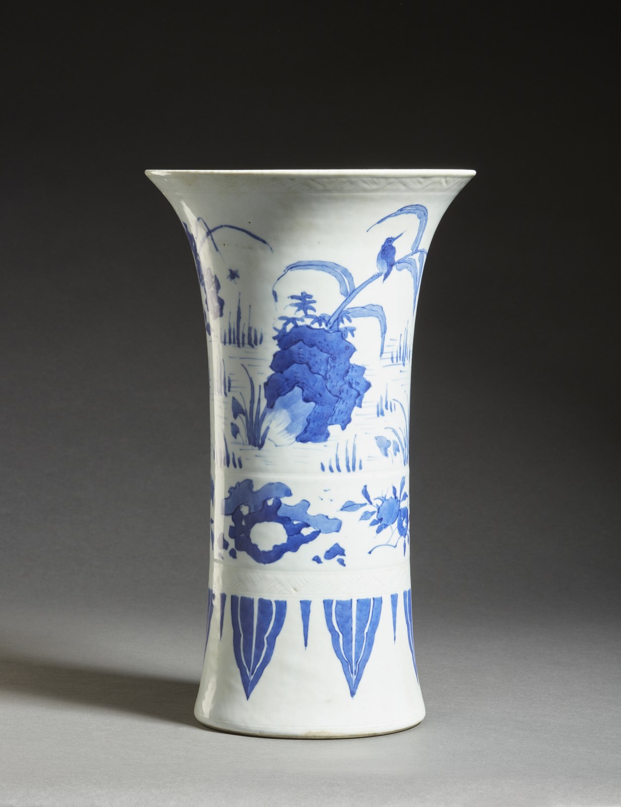 Arte Cinese Vaso a tromba in porcellana bianco e blu