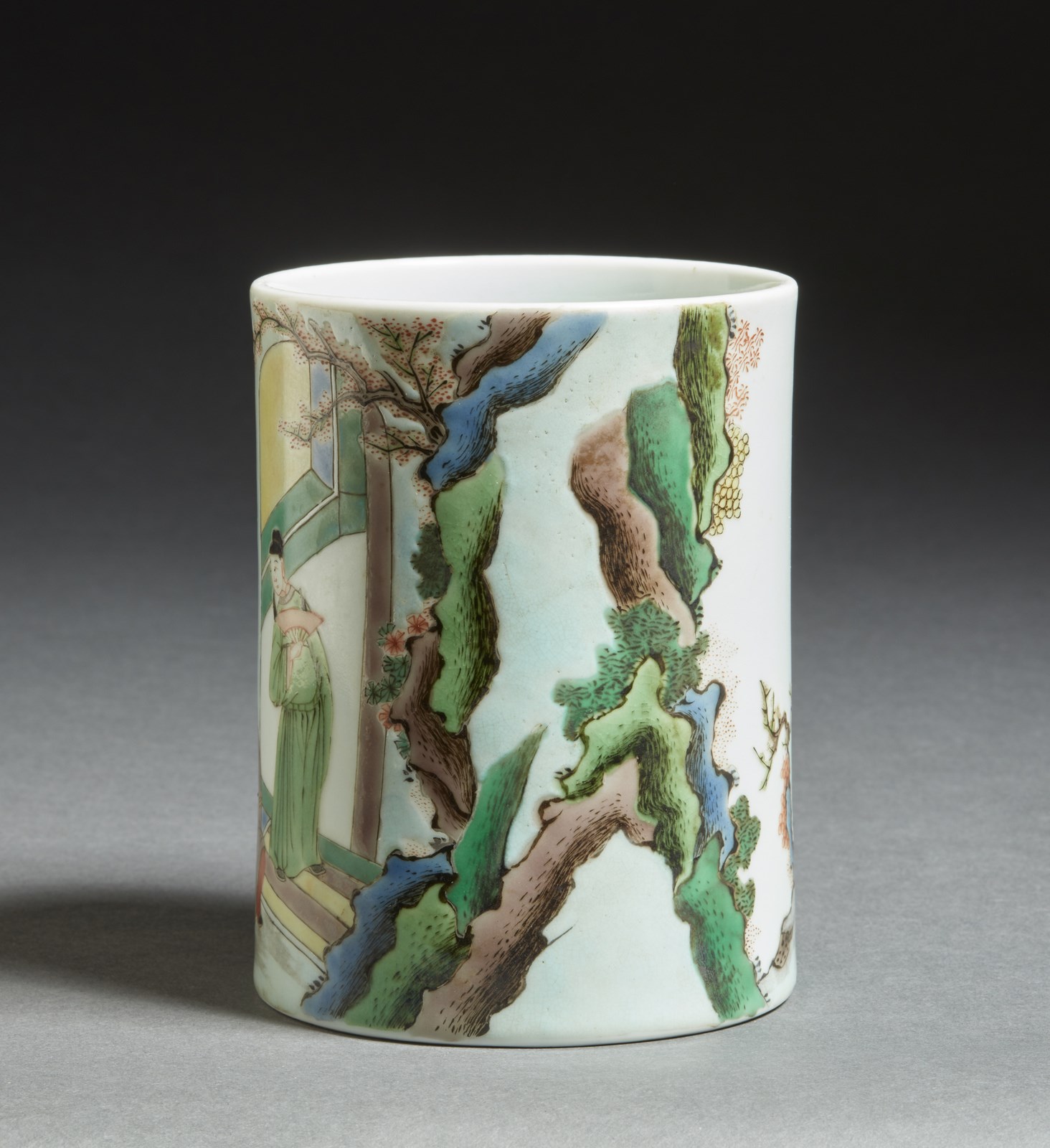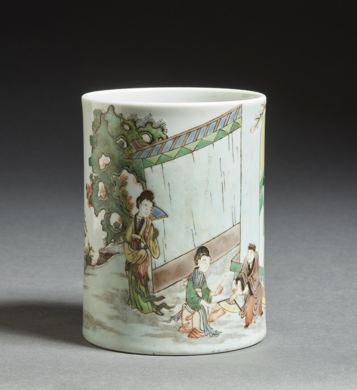 Arte Cinese - Porta pennelli in porcellana famiglia verde Cina, XIX secolo .
