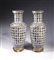 Cina, XIX secolo . . Cm 22,00 x 50,00. Vasi in metallo con corpo e collo quasi cilindrici, spalla spiovente e bocca dritta. L'esterno decorato a smalti cloisonnè con ideogrammi in carattere zhuanshu ripetuti su sfondo bianco.
