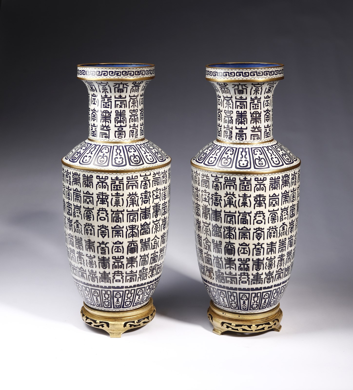 Arte Cinese - Coppia di vasi cloisonnè decorati con iscrizioni Cina, XIX secolo .