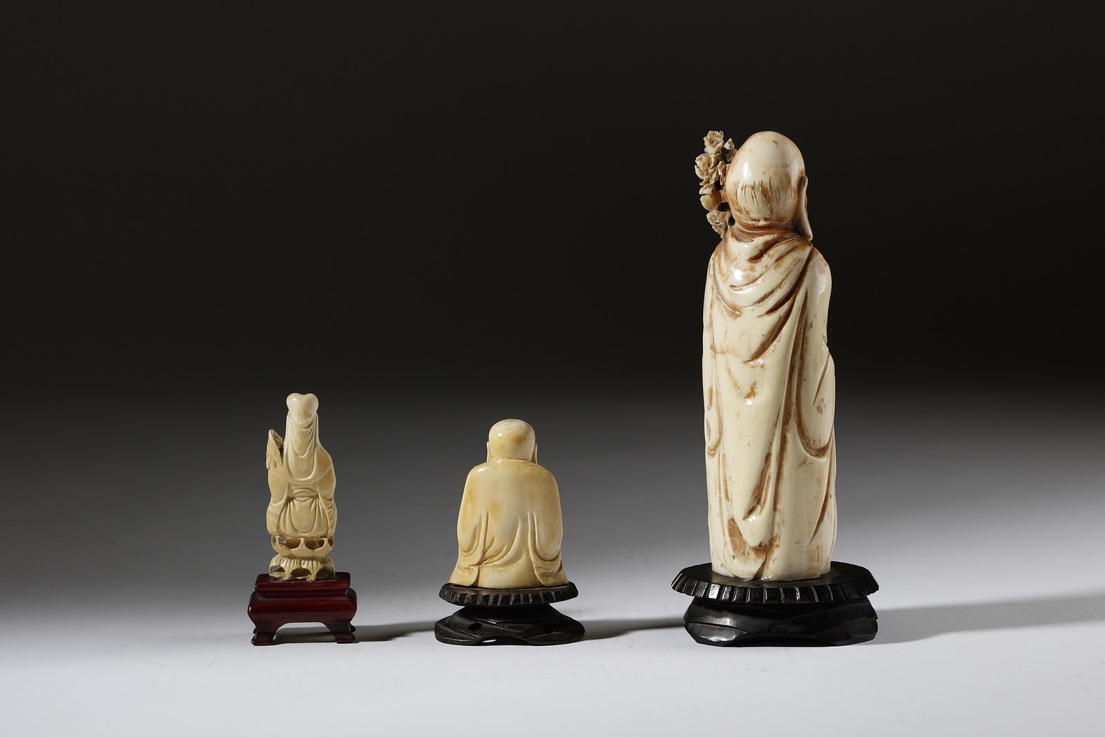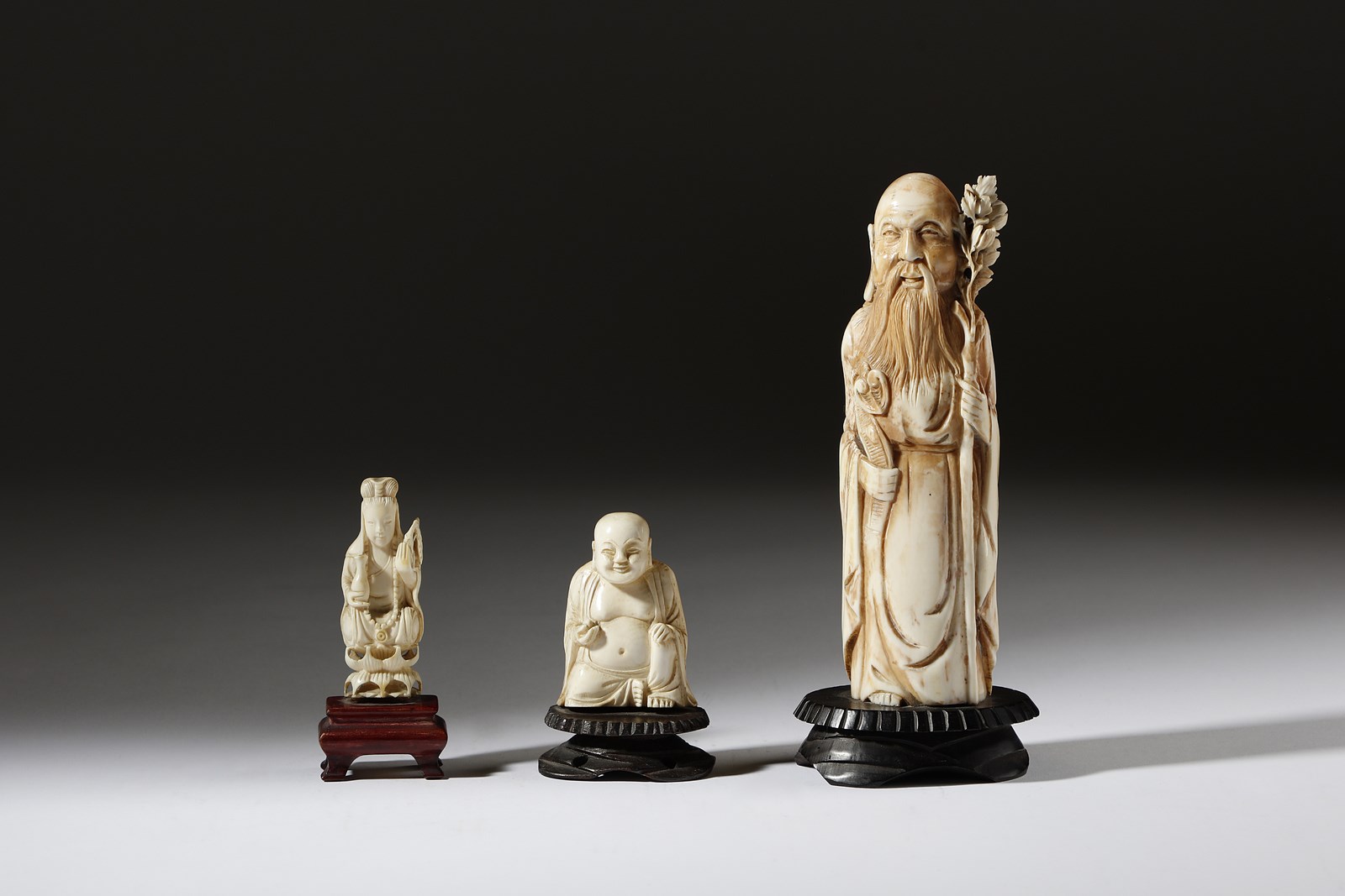 Arte Cinese Gruppo di tre figure in avorio