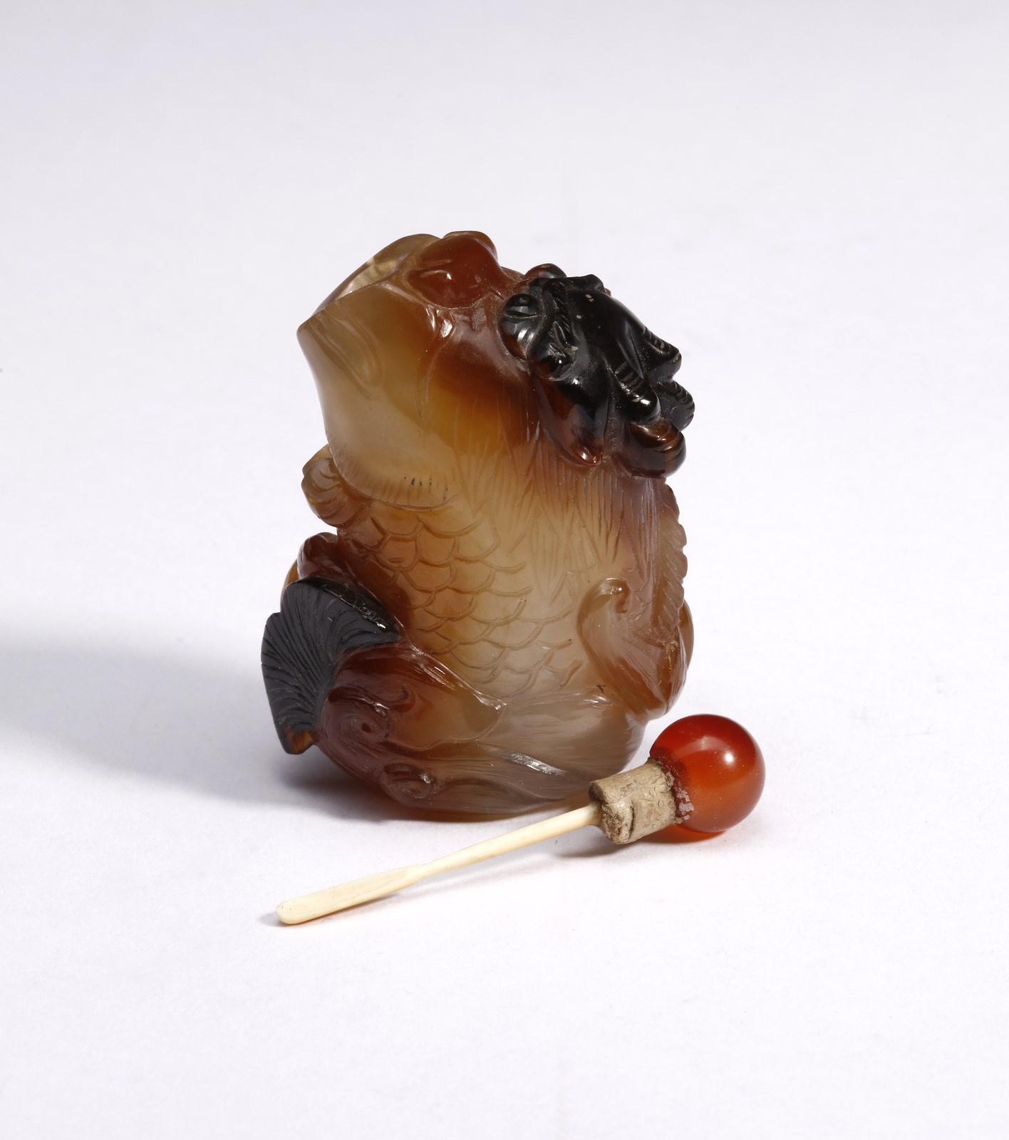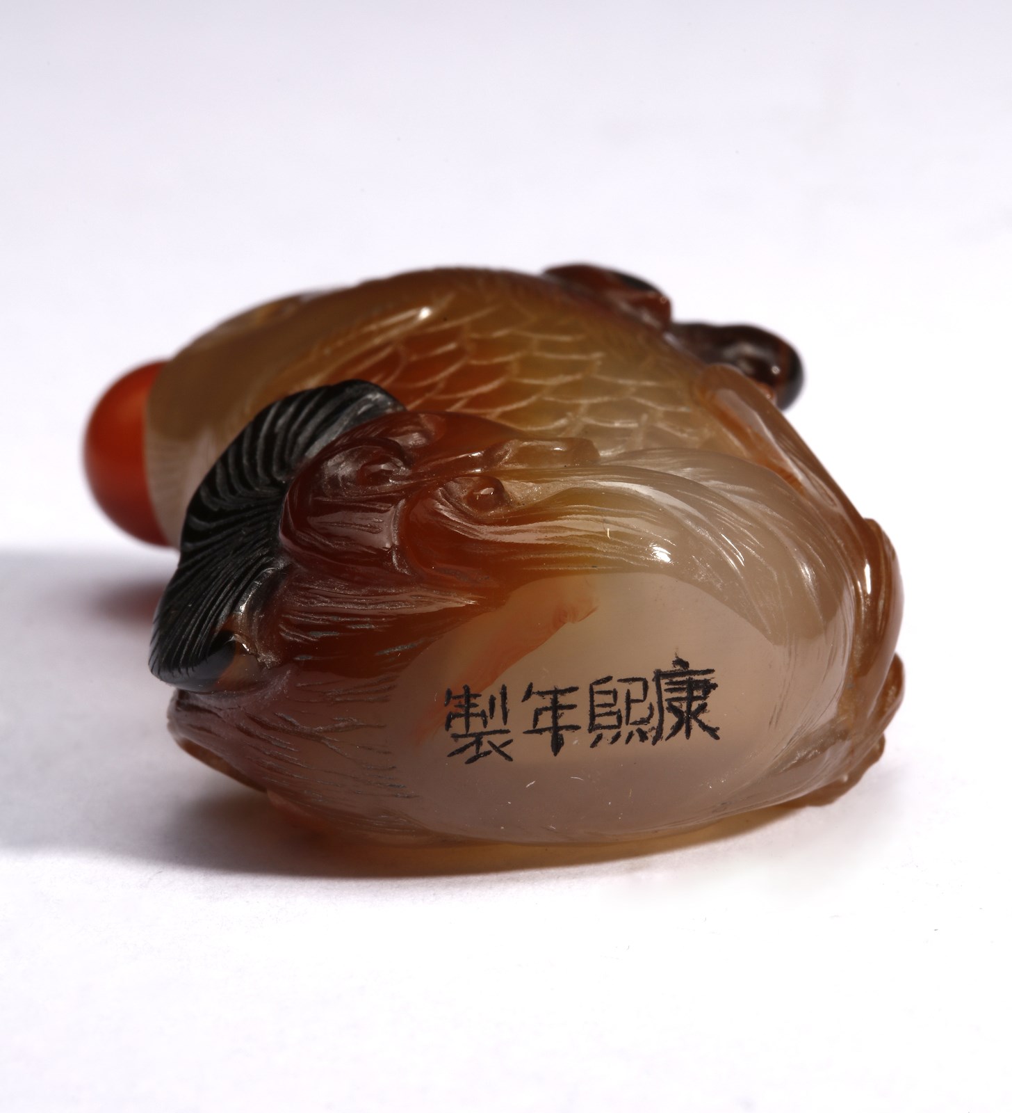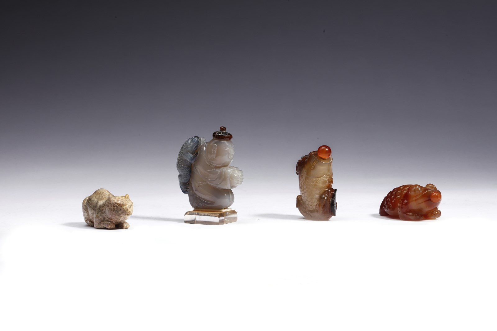 Arte Cinese Gruppo di quattro tabacchiere zoomorfe in corniola e pietra semi preziosa
