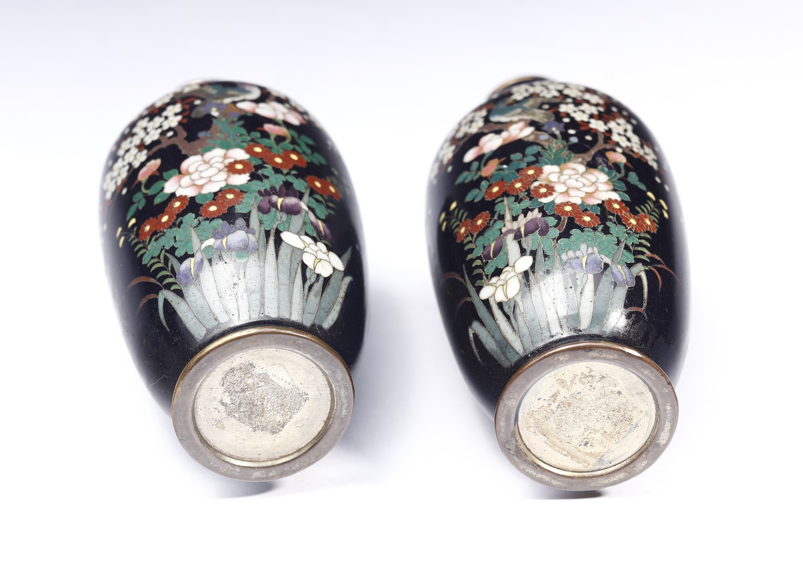 ARTE GIAPPONESE - Coppia di vasetti cloisonné Giappone, periodo Meiji, XIX secolo .