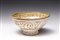 Iran, Kashan, XII - XIII secolo . . Cm 15,00 x 7,50. Dalla caratteristica forma troncoconica poggiante su alto piede circolare, l'interno decorato in stile miniaturistico con personaggi disposti in andamento radiale incorniciati da alberi stilizzati. Banda calligrafica in pseudo cufico sull'orlo superiore. L'esterno dipinto con elementi vegetali stilizzati.