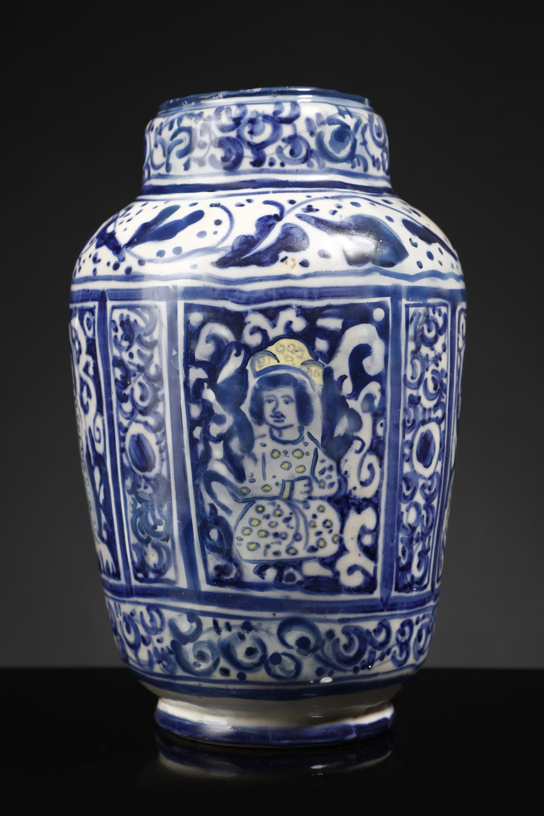 Arte Islamica - Albarello in ceramica bianca e blu. Iran, XVIII - XIX secolo .