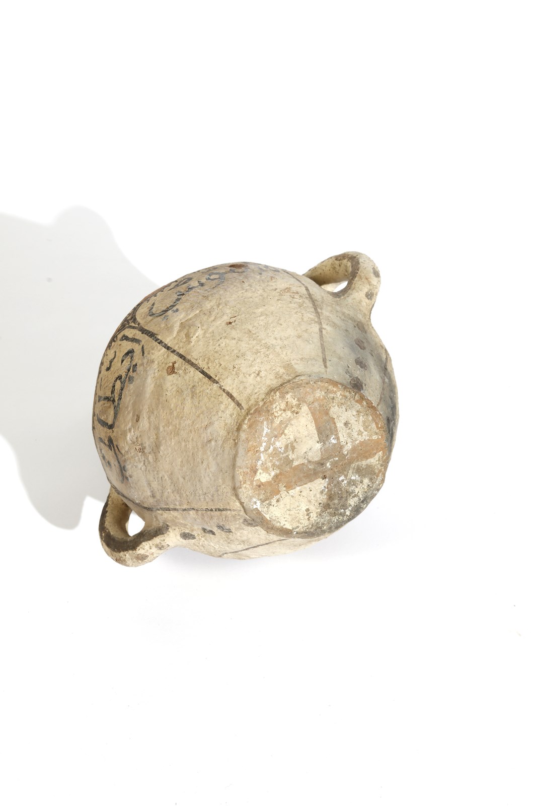 Nord Africa . . Cm 34,40 x 35,50. In terracotta con ampio serbatoio globulare e doppia ansa. L'esterno decorato con motivi geometrici ed iscrizione sulla spalla.