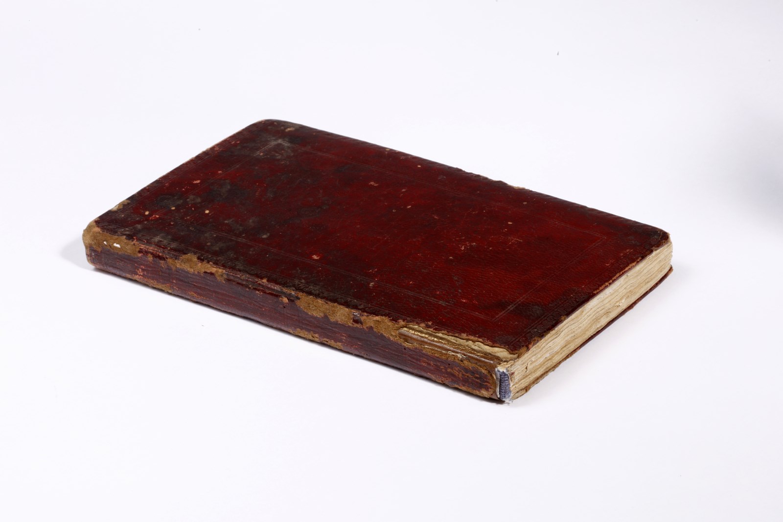 Copertina in cartone pressato ricoperto di pelle, priva di ribalta.