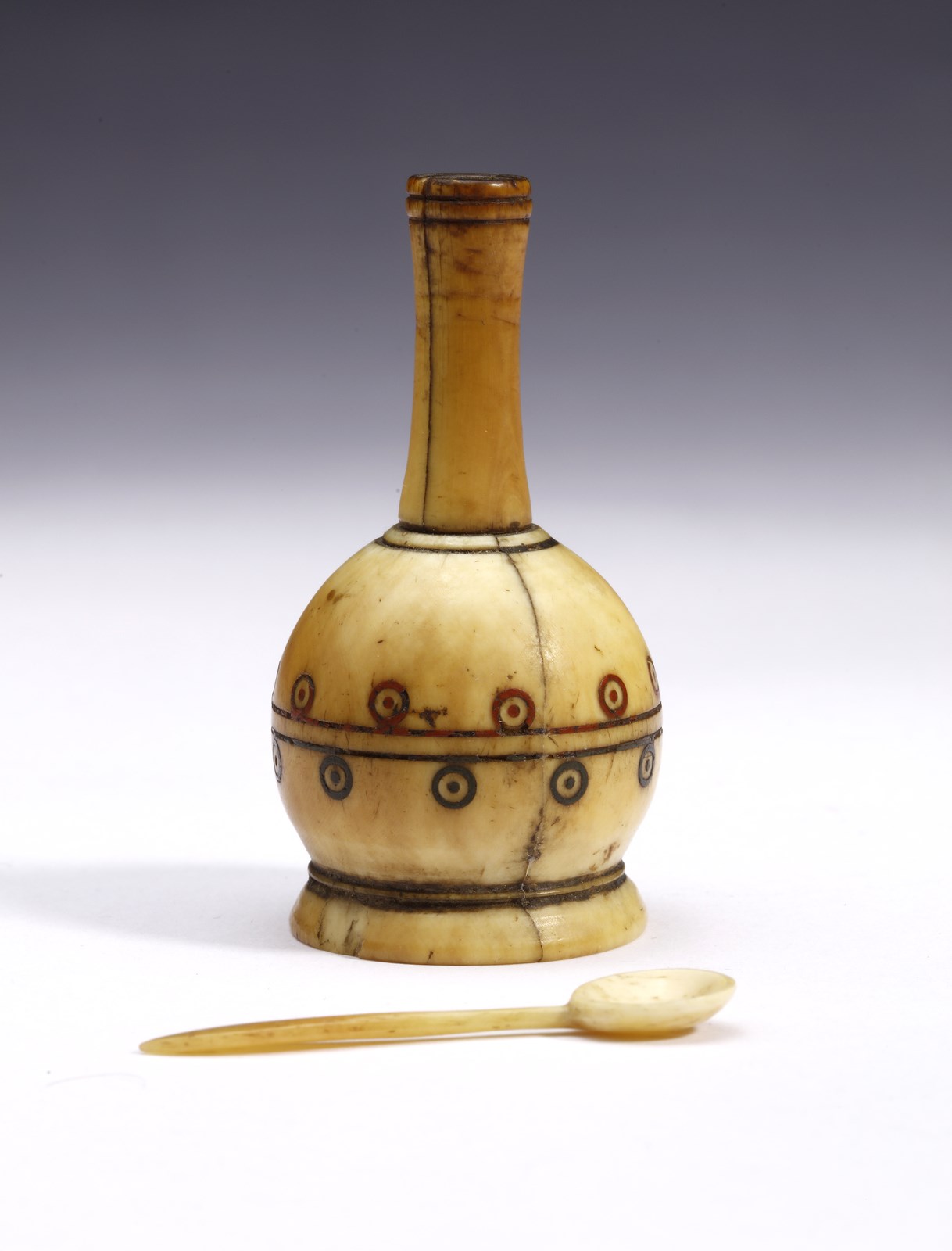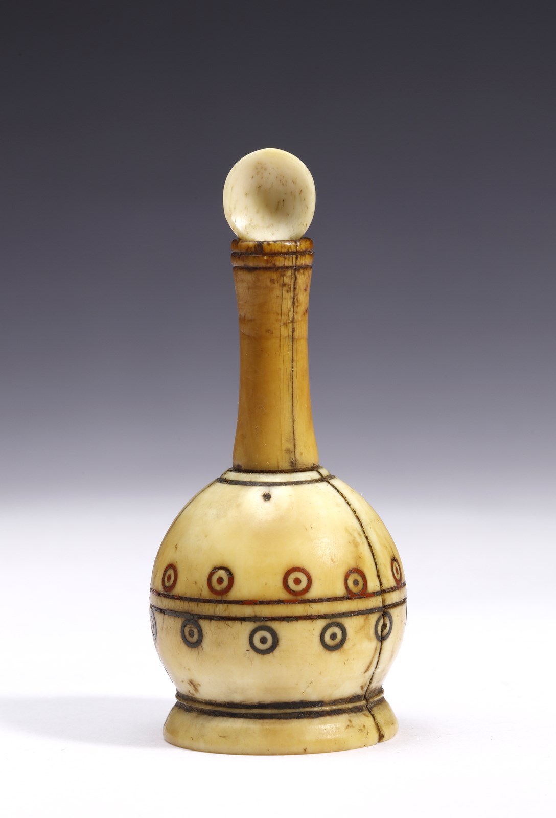 Arte Islamica - Piccola bottiglia porta profumo in avorio Iran o Egitto, XVIII secolo o antecedente .