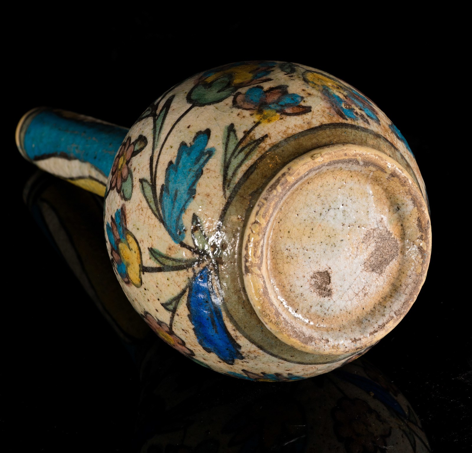Arte Islamica - Bottiglia in ceramica dipinta con fiori ed uccelli Iran, tardo XIX secolo .