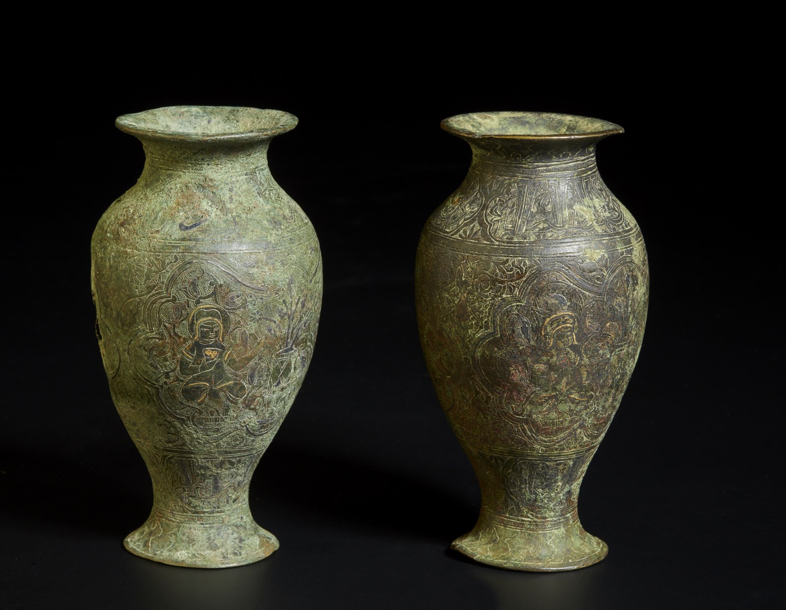 Arte Islamica - Coppia di elementi in bronzo in stile Mosul Levante, XX secolo .