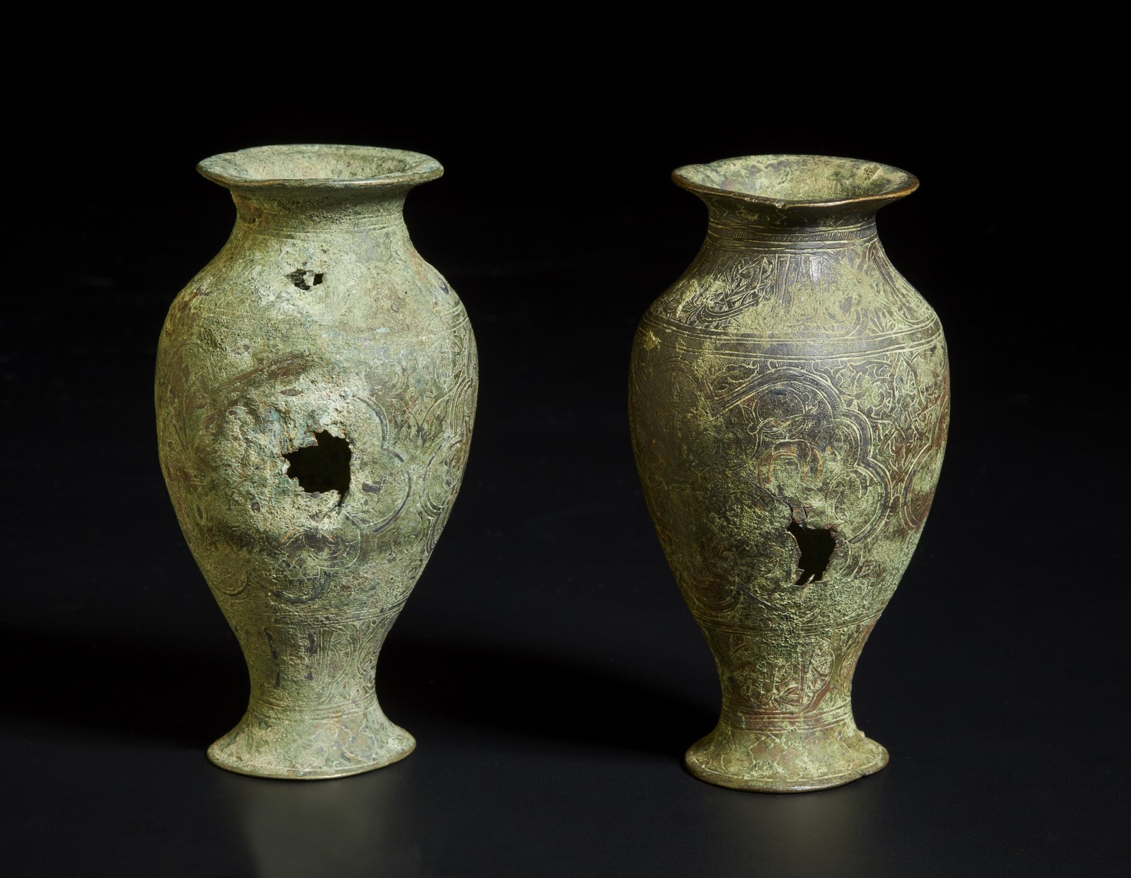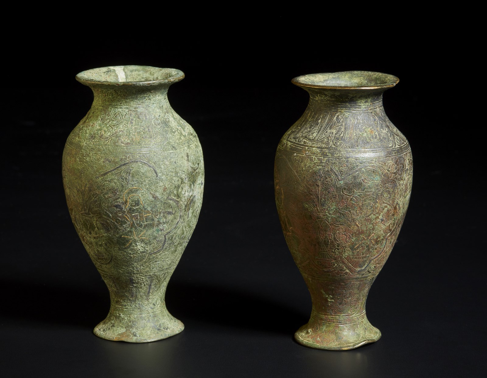 Arte Islamica Coppia di elementi in bronzo in stile Mosul