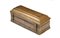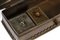 India Coloniale, XIX secolo . . Cm 22,50 x 9,00. In forma rettangolare, il coperchio rigonfio incernierato su un lato con chiusura ad incastro sull'altro. All'interno è presente un vassoio per le penne, completo di calamaio per l'inchiostro. Gli orli di base e coperchio sono rifiniti con la sagoma di fiori stilizzati ripetuta, evocativa di un merlo architettonico.