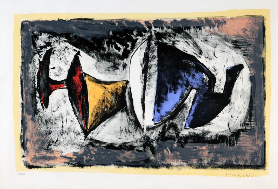 MARINO MARINI 1901 - 1980 " Composizione degli elementi ", 1965 Litografia a colori, cm. 51 x 78,5 Firmato in basso a destra Opera n. 48/50 Prov. Collezione Privata