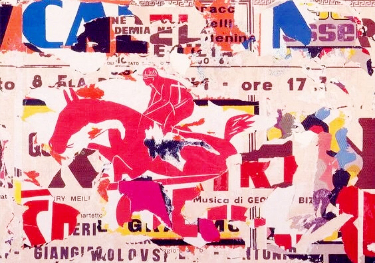 ROTELLA MIMMO Catanzaro (Cz) 1918 Il cavaliere rosso 1963 Serigrafia collage...