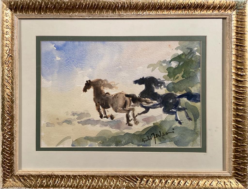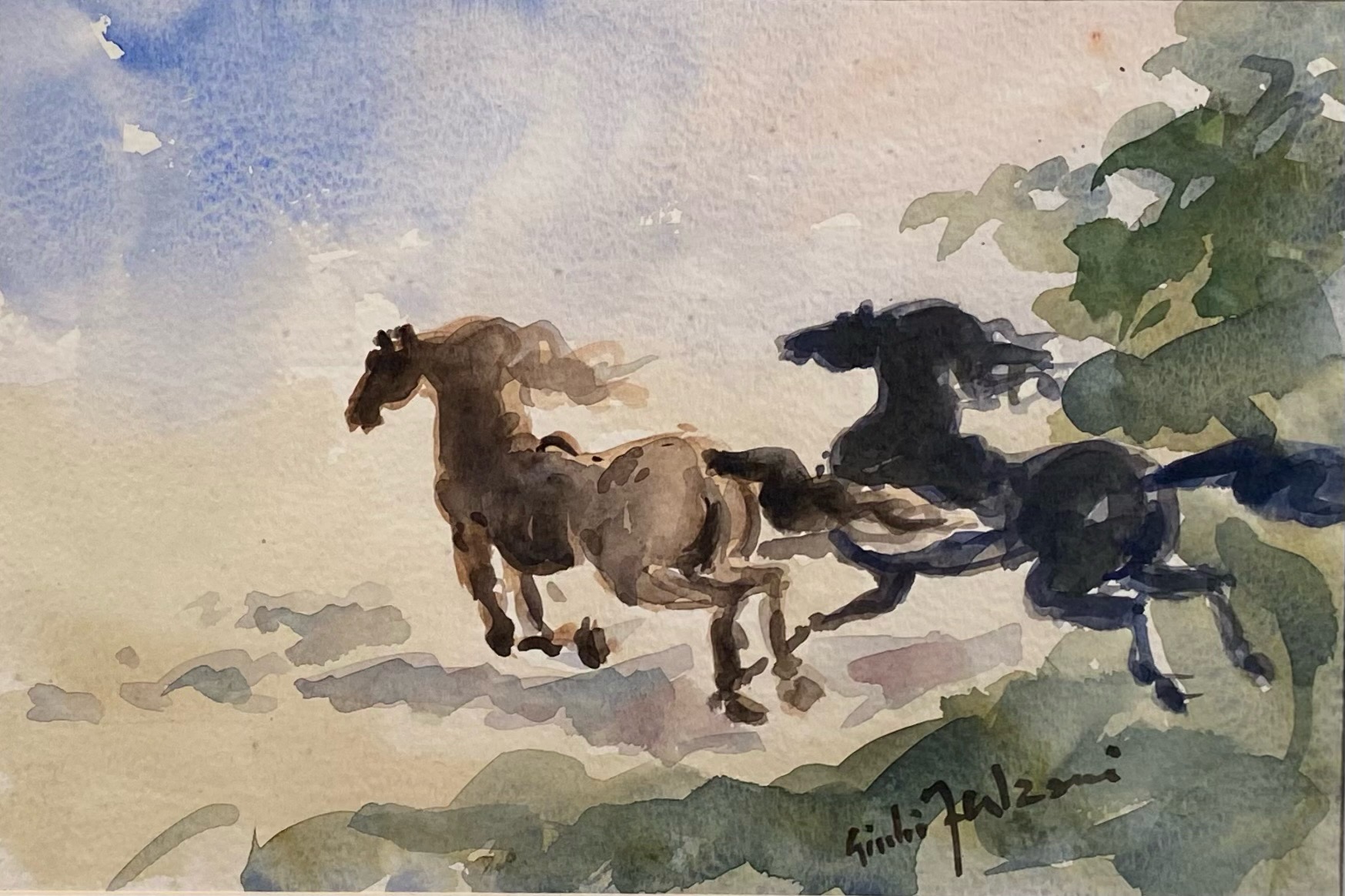FALZONI GIULIO milano (Mi) Cavalli Acquarello su cartoncino 25,00x35,00...